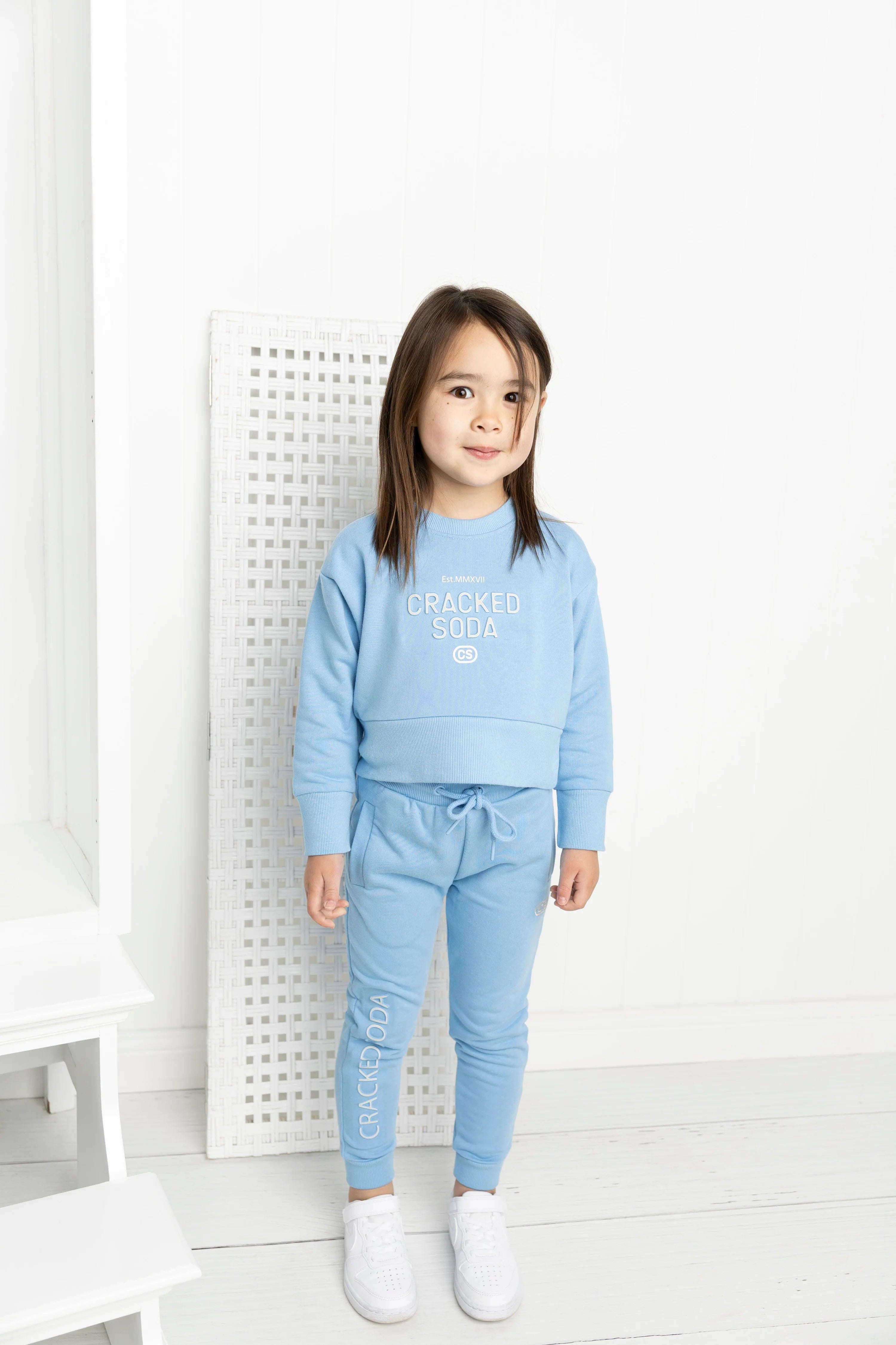 Meet your new comfort obsession: the Ava French Terry Crew & Trackpant Set in striking blue. The crew features a soft French terry construction with a raised beige embossed Cracked Soda logo that pops with texture and dimension. Pair it with the matching trackpants—complete with an adjustable drawstring waistband, functional pockets, and that same signature logo on the leg panel. Whether you're layering up or going full loungewear mode, this set delivers cosy vibes without compromising on style. Rep the brand while staying snug, sharp, and ready for anything.