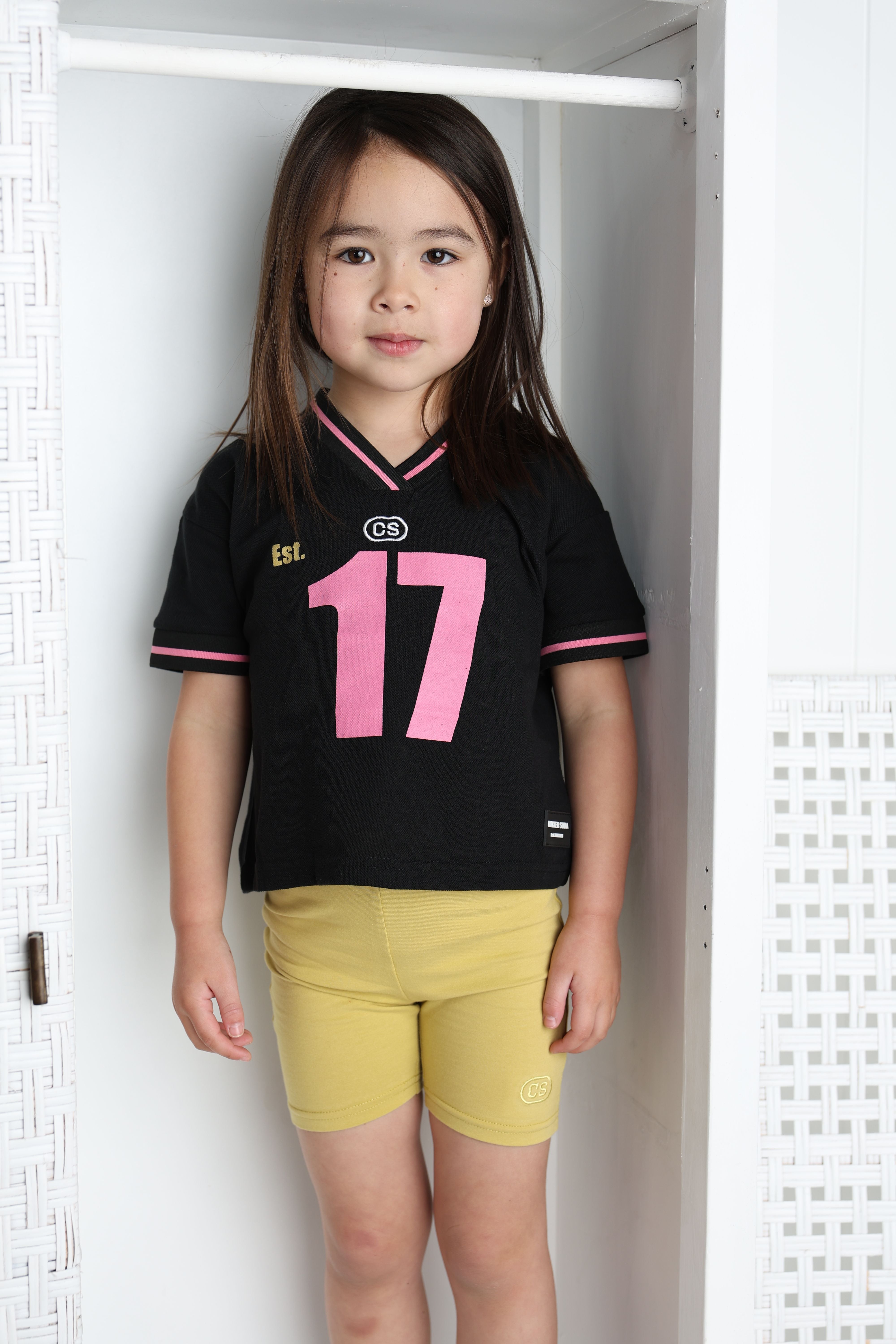 Level up your wardrobe with this vibrant matching set! The black jersey tee pops with eye-catching pink and white graphics that demand attention, while the clover green bike shorts complete the look with understated cool. Perfect for making a statement without trying too hard—this duo delivers comfort and personality in one go. Mix, match, or wear them together for that fresh, coordinated aesthetic that turns heads.