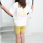 Meet your new go-to tee—a fresh white base that lets those cheeky olive and pink pops steal the show. It's the kind of top that plays well with others, whether you're dressing it up or keeping it casual. Fresh, fun, and ready for whatever your day throws at it.