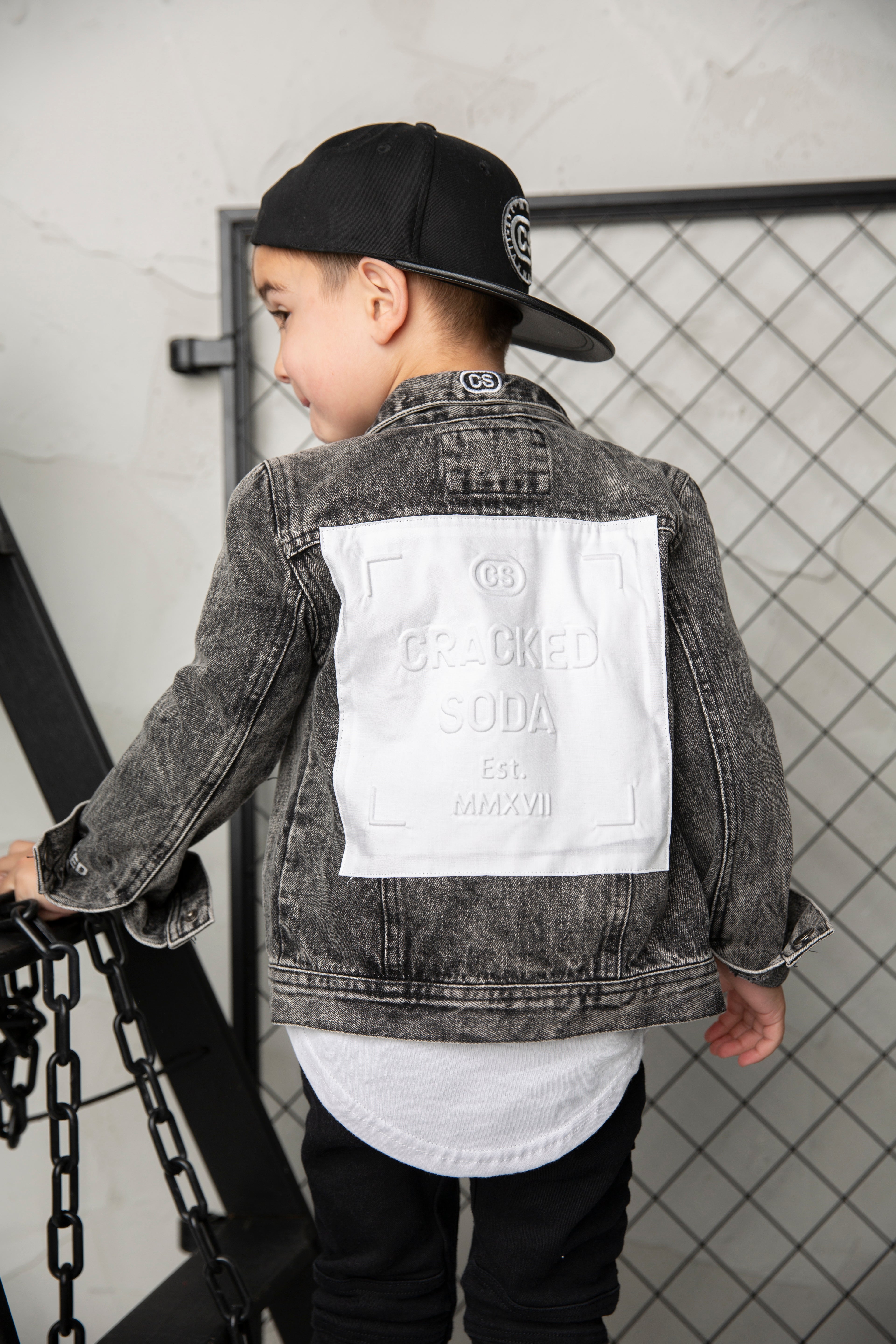 Add a dash of attitude with the Conner Detailed Denim Jacket in ash. This jacket features a smooth zip adorned with a sleek logo and a striking embossed white panel on the back, making it a playful twist on classic denim. Perfect for those who like to stand out with effortless style!