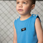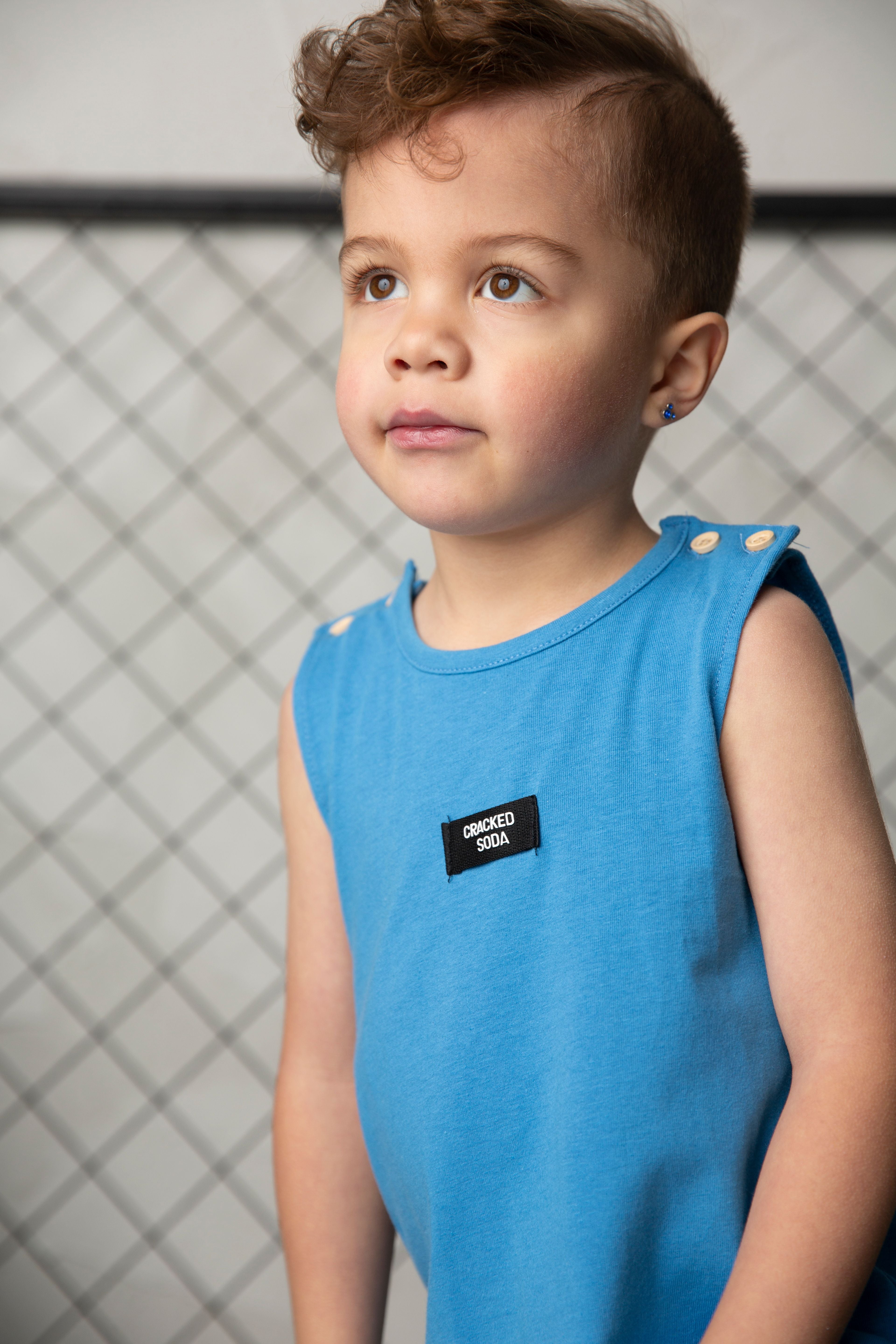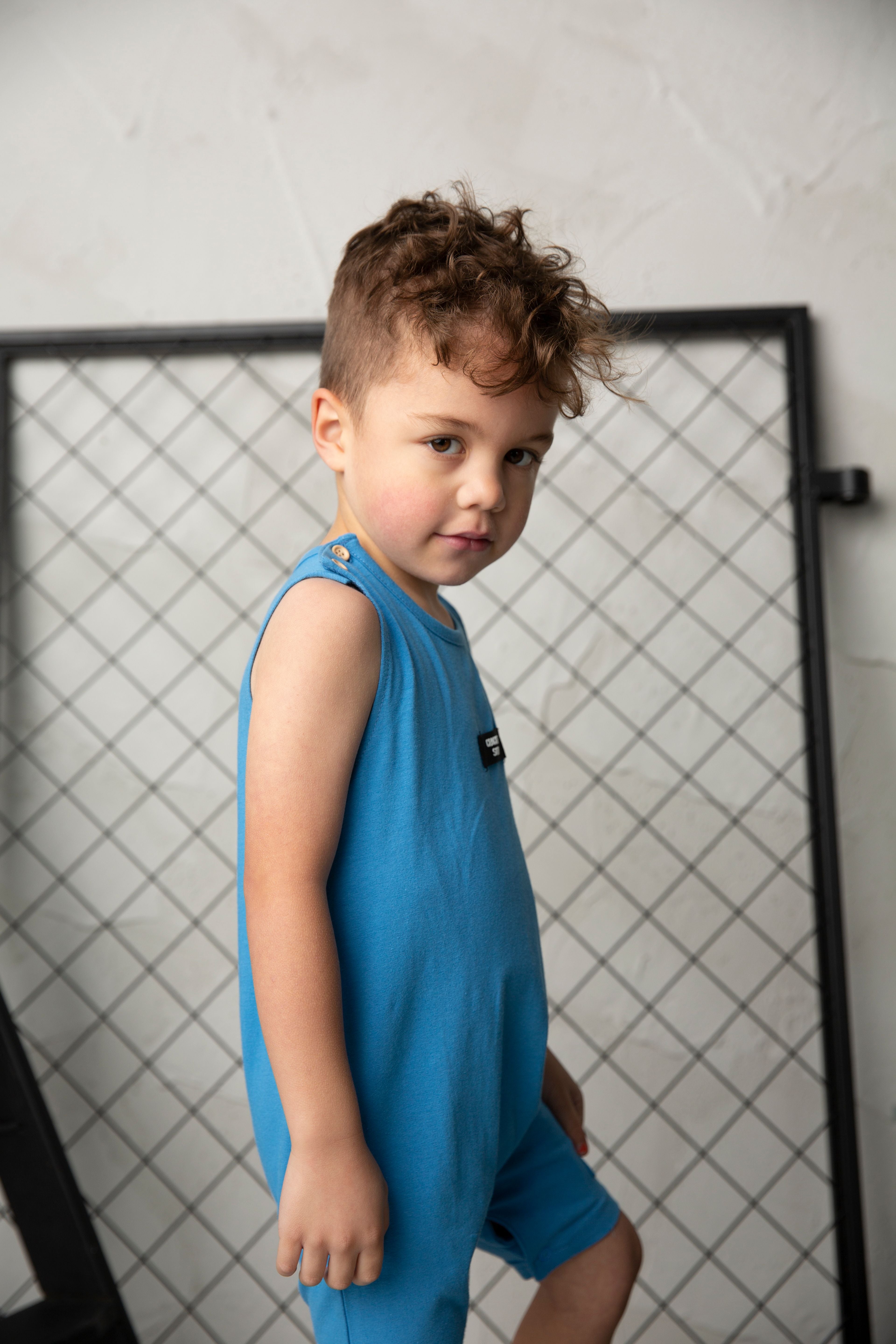The Ezra Romper in Blue is designed for playful ease with shoulder buttons and inner leg snaps for quick changes. Finished with a cute CS logo fabric tag, it’s the perfect blend of comfort and fun for everyday adventures.