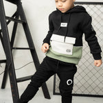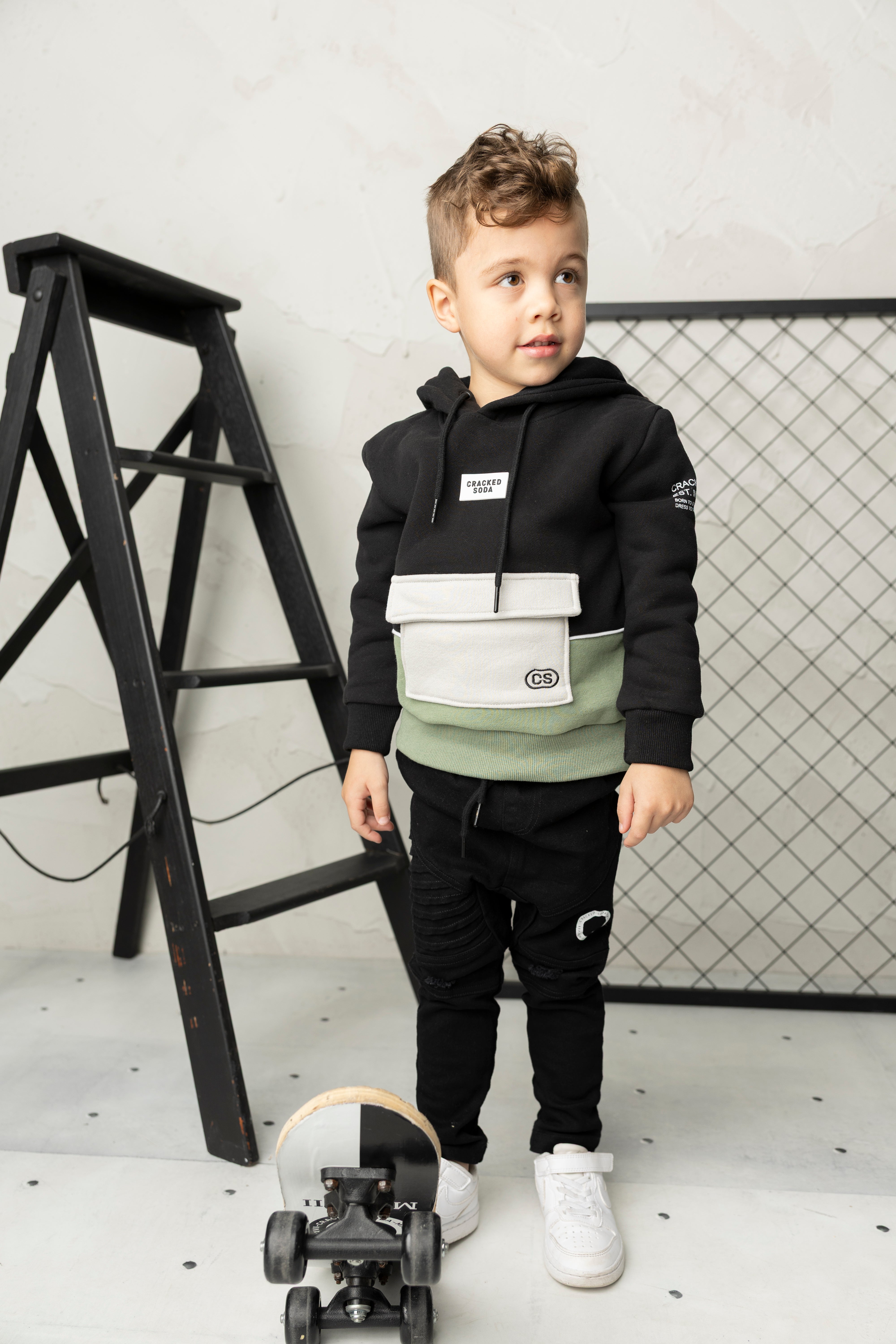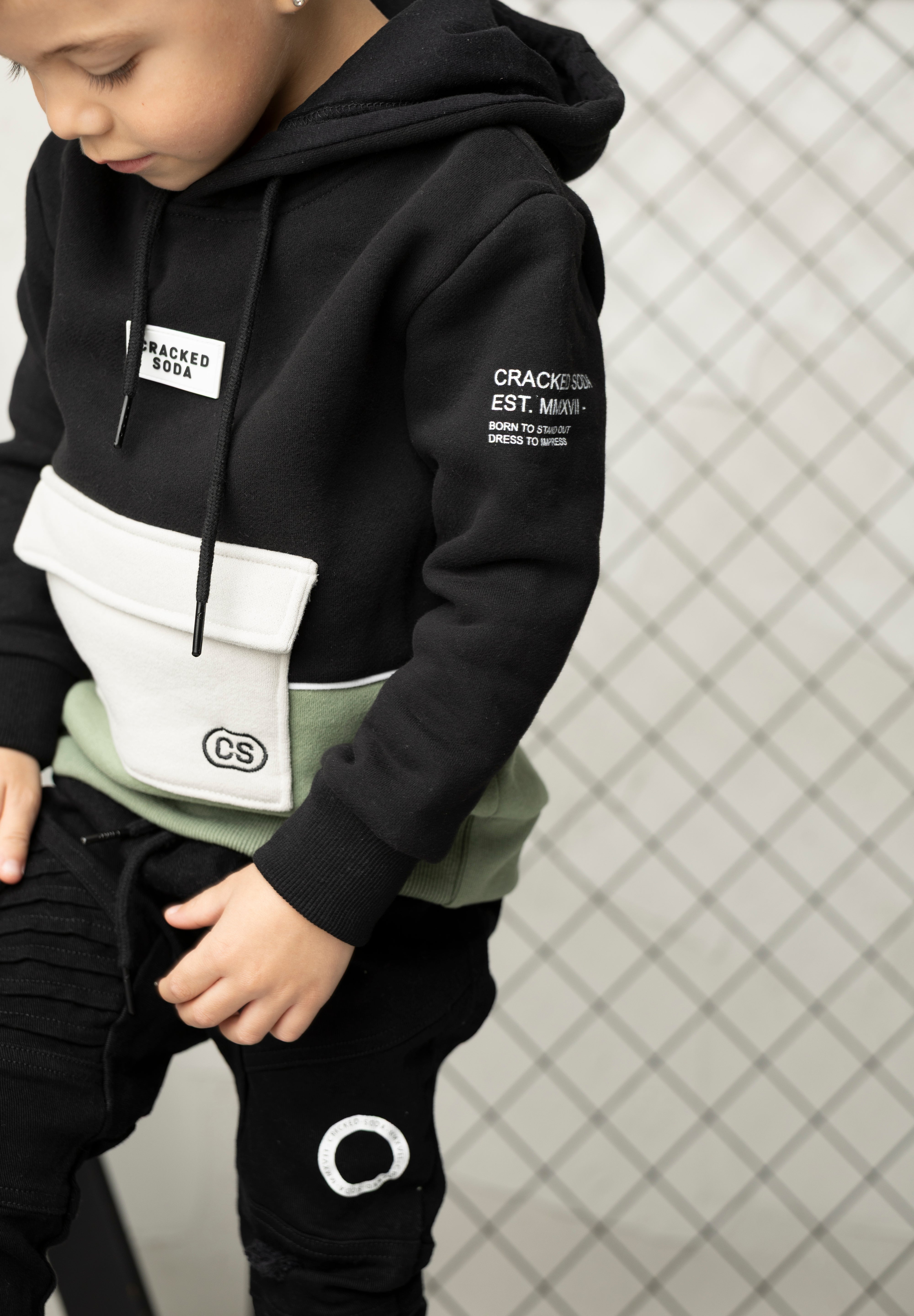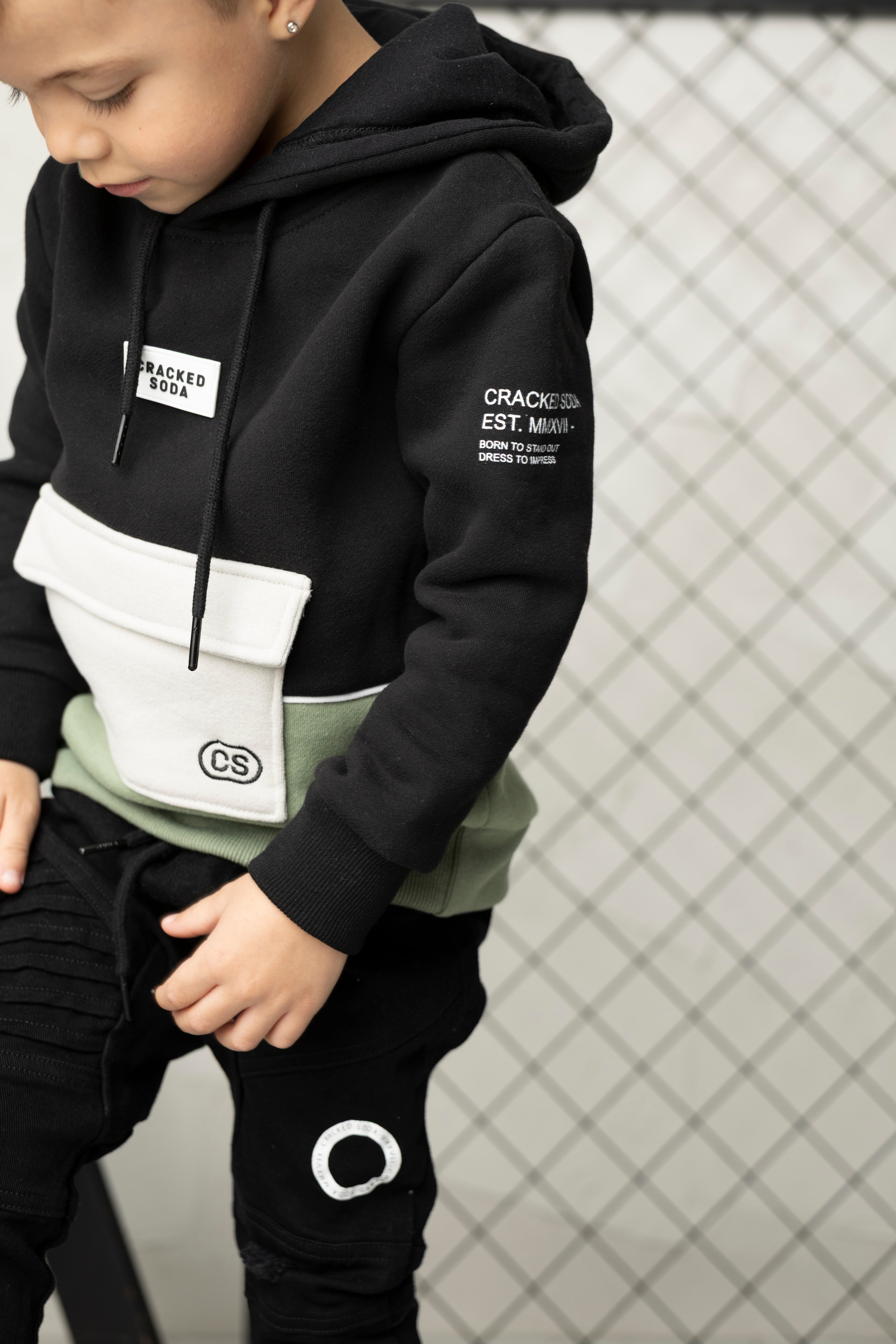 The Flint Pocket Hoodie is your new uniform for looking sharp without trying too hard. This black and olive colourway strikes the perfect balance between bold and versatile, while crisp white piping adds a touch of refinement. A drawstring hood gives you control over your vibe, and a front pocket keeps your essentials close. Effortless cool, every single time.