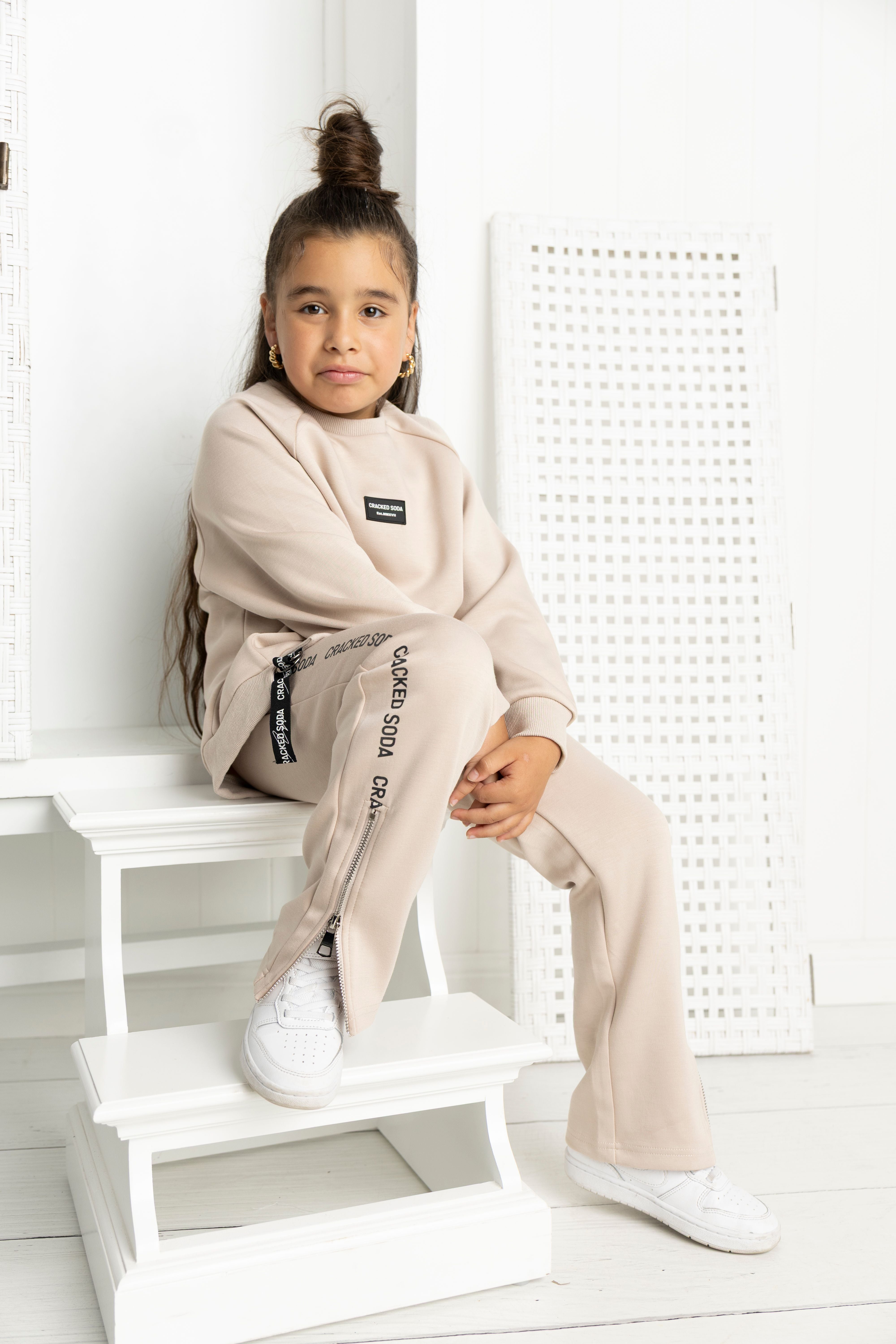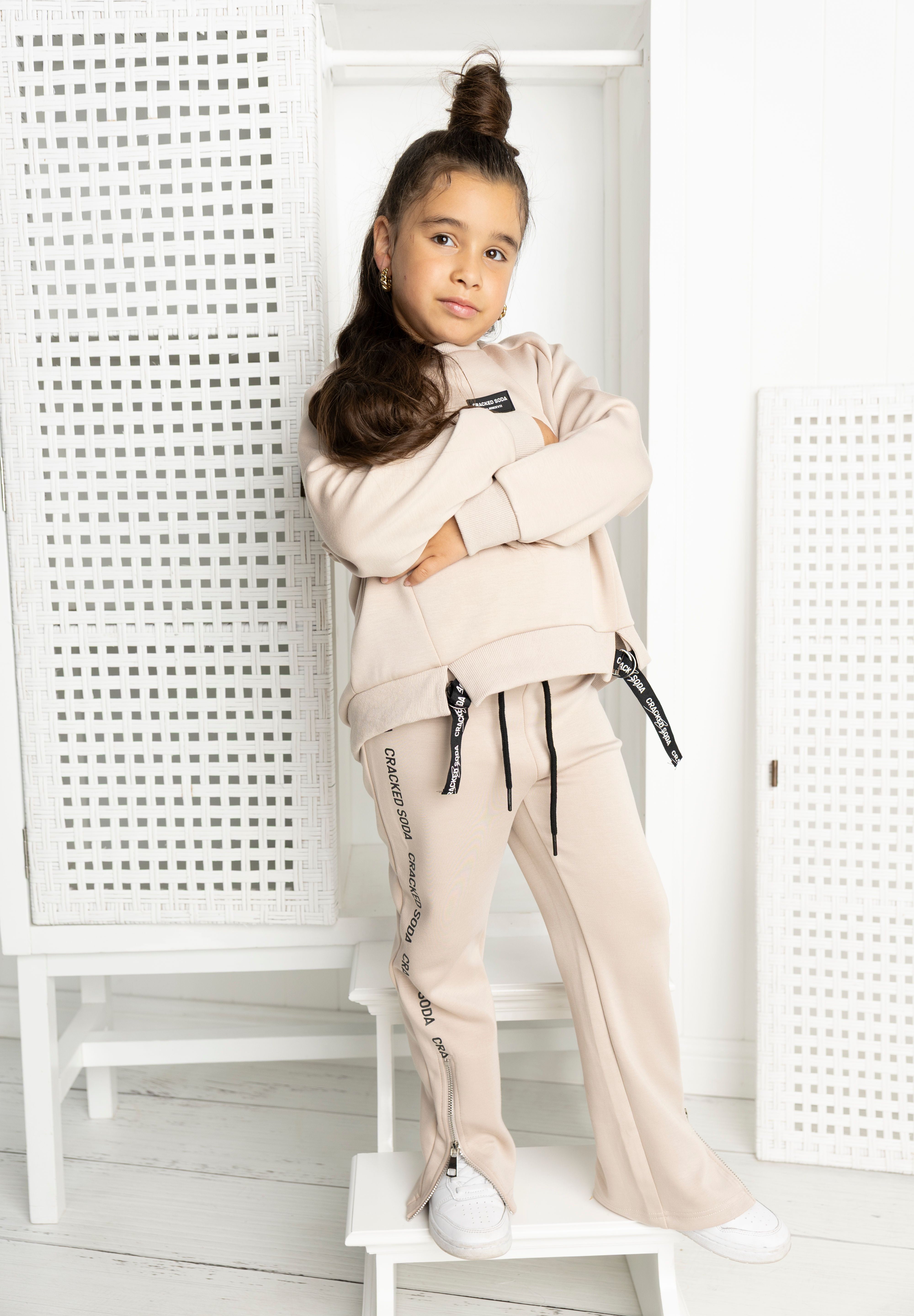 Trendy sand pants with playful details that set them apart! The elastic waistband with drawstring ensures a perfect fit, while eye-catching CS logos on the side panels with zips add functional flair. Comfortable enough for all-day wear, these pants bring attitude and practicality together. A statement piece that's ready for anything.
