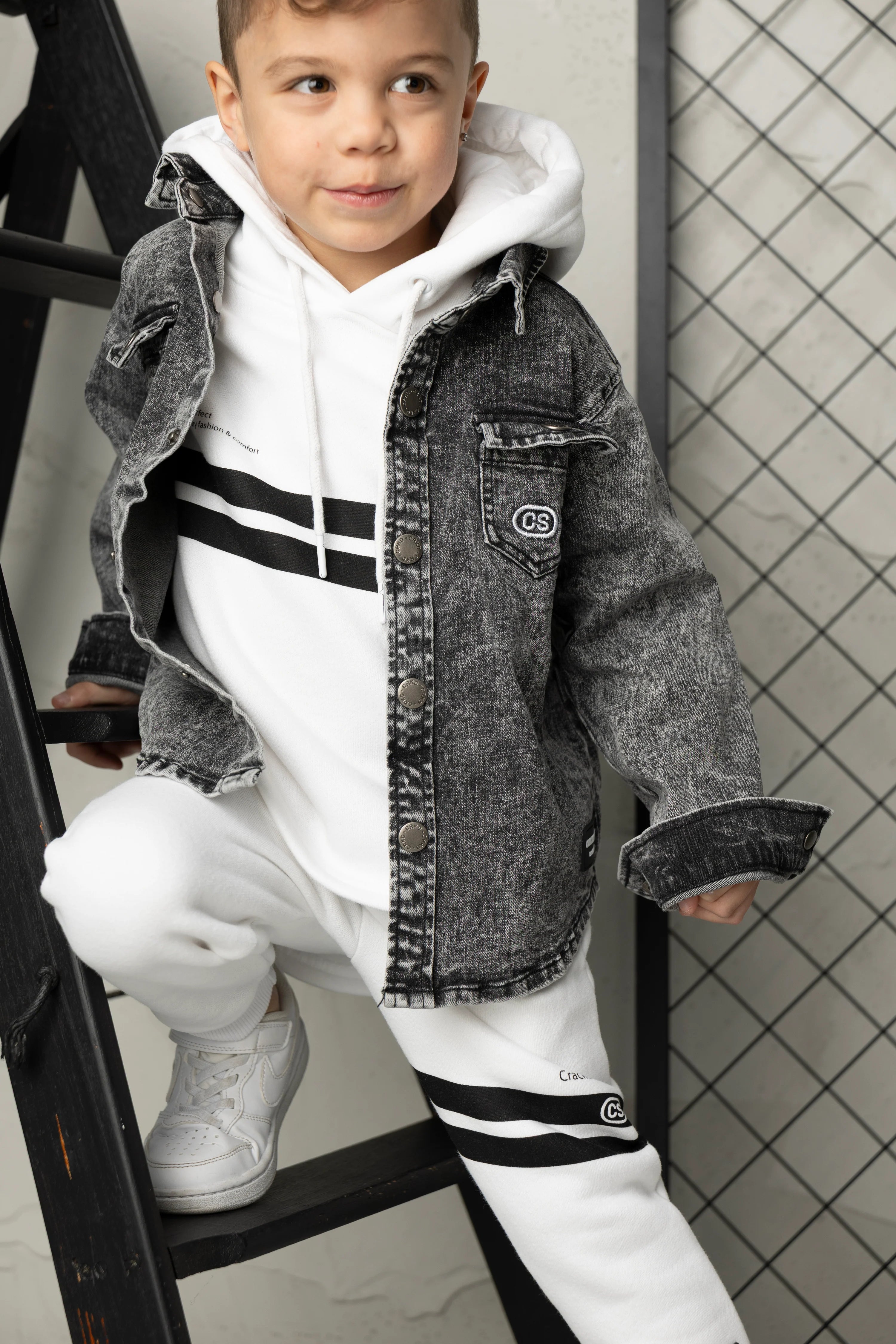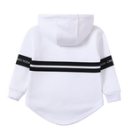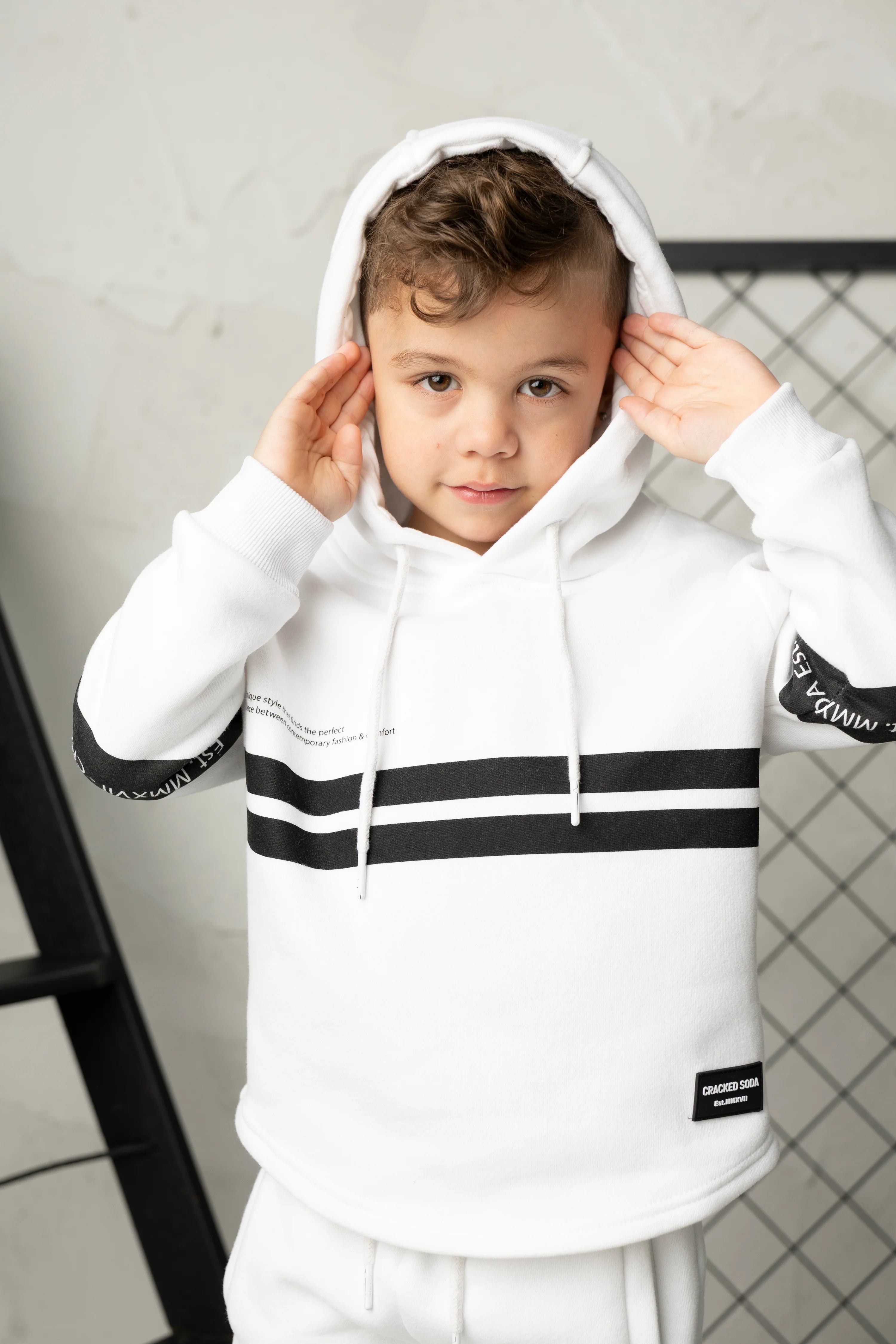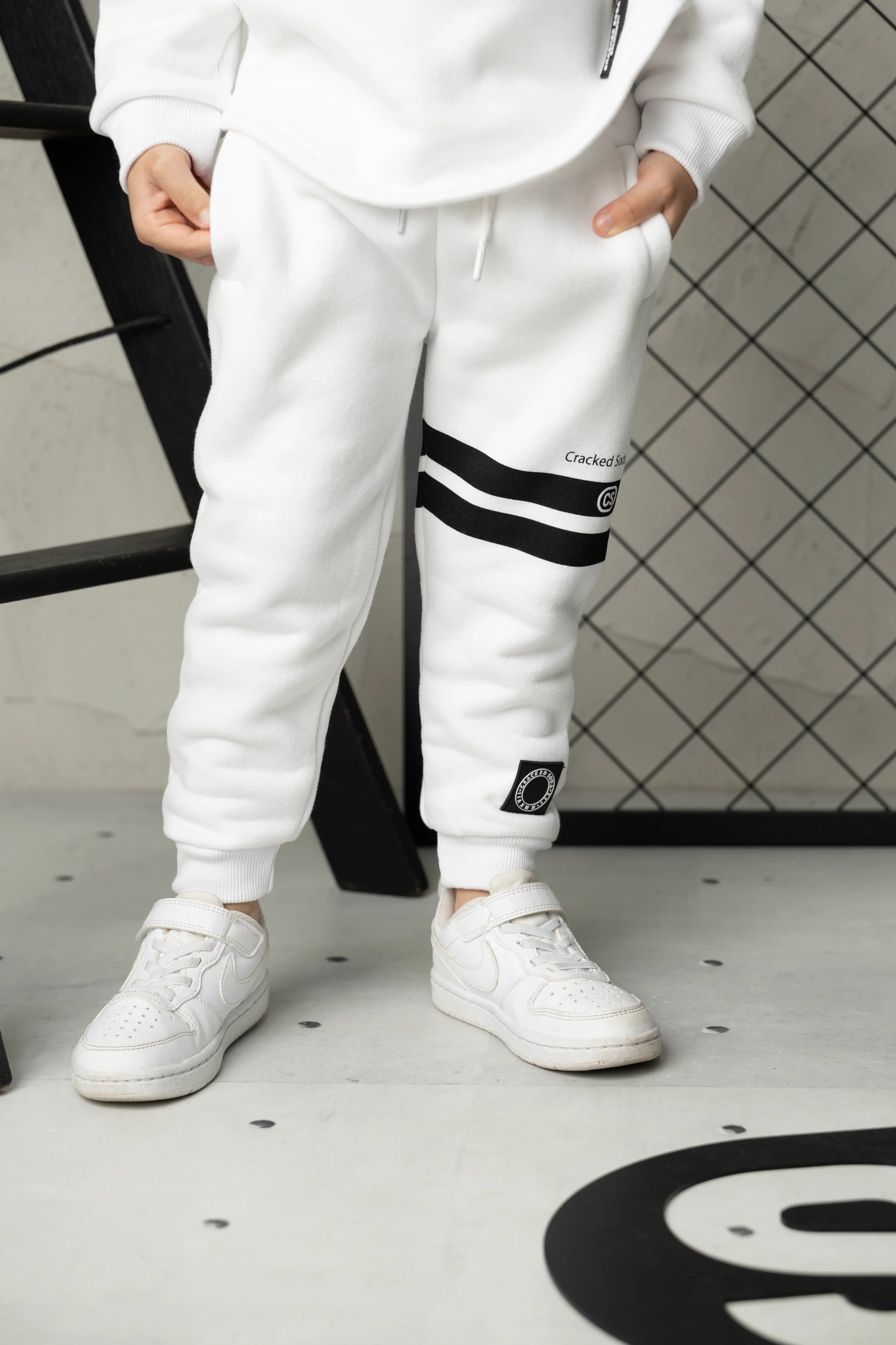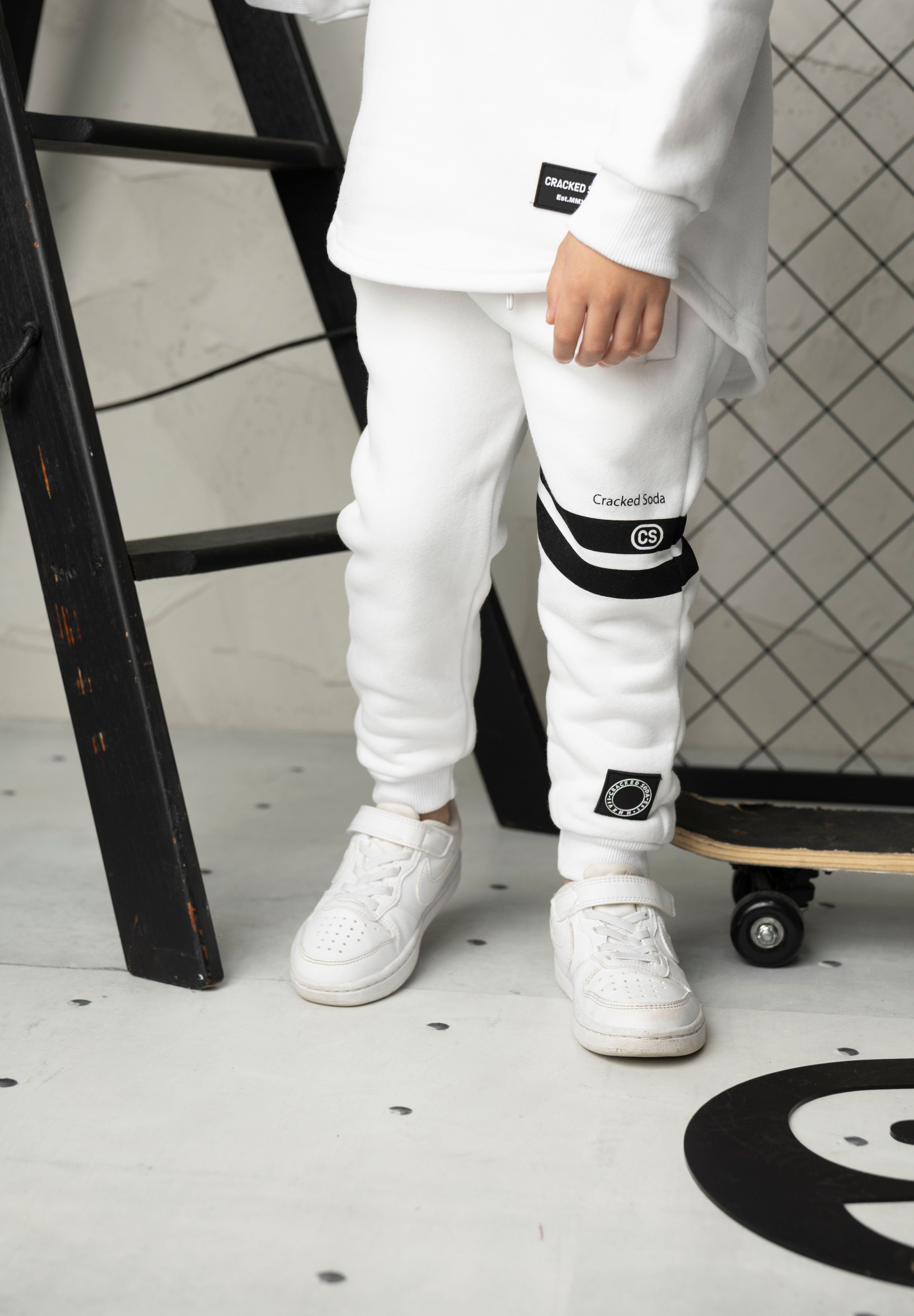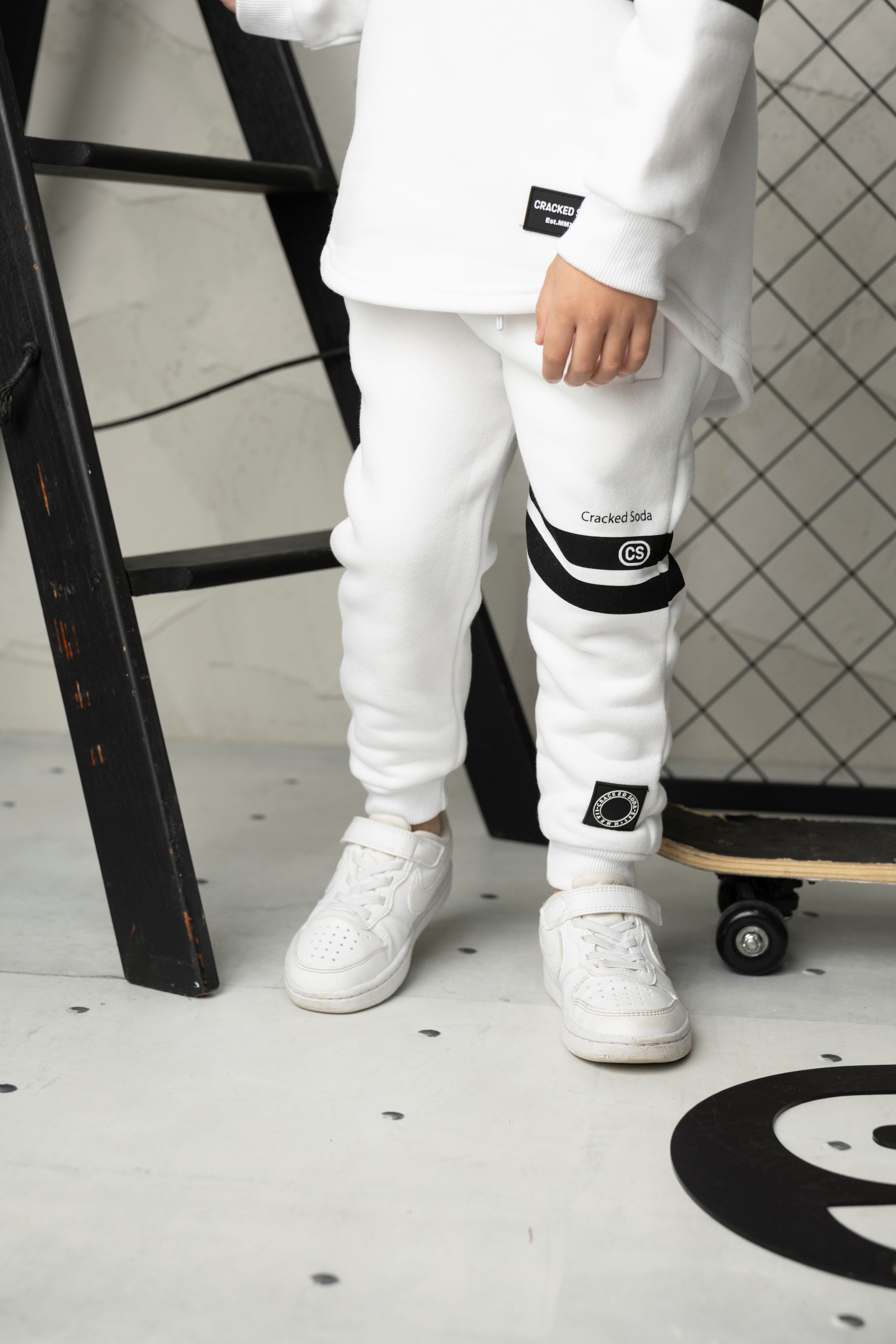 Meet Jack—your ultimate casual comfort set. This white hoodie and trackpant duo combines effortless style with practical design. The hoodie features a detailed front design and adjustable drawstring hood, while the curved hem adds contemporary flair. The matching trackpants offer an elastic waistband with drawstring for a customized fit, plus functional pockets for everyday convenience. Perfect for relaxed days, casual outings, or lounging at home, Jack delivers playful sophistication in one coordinated package.