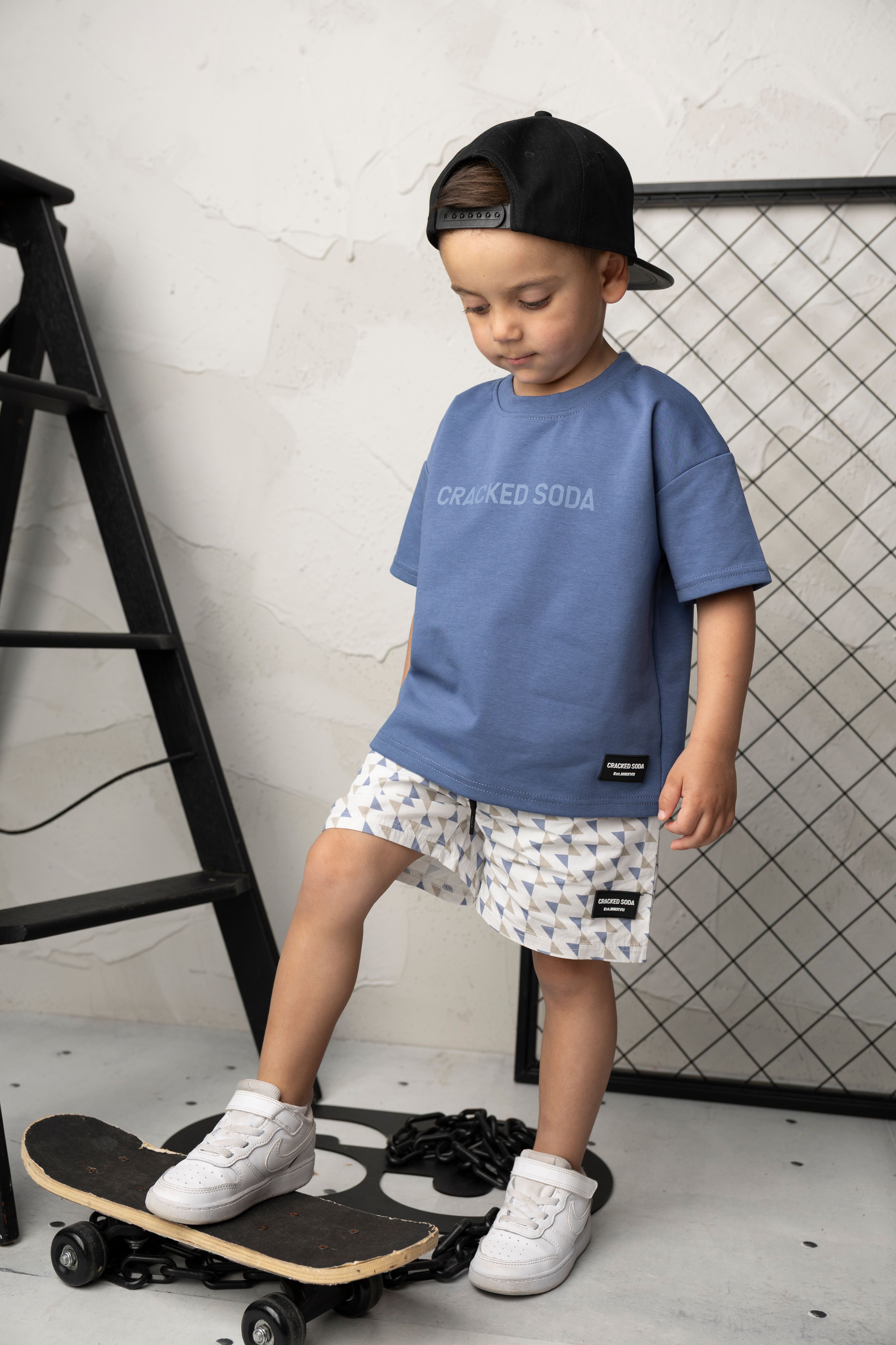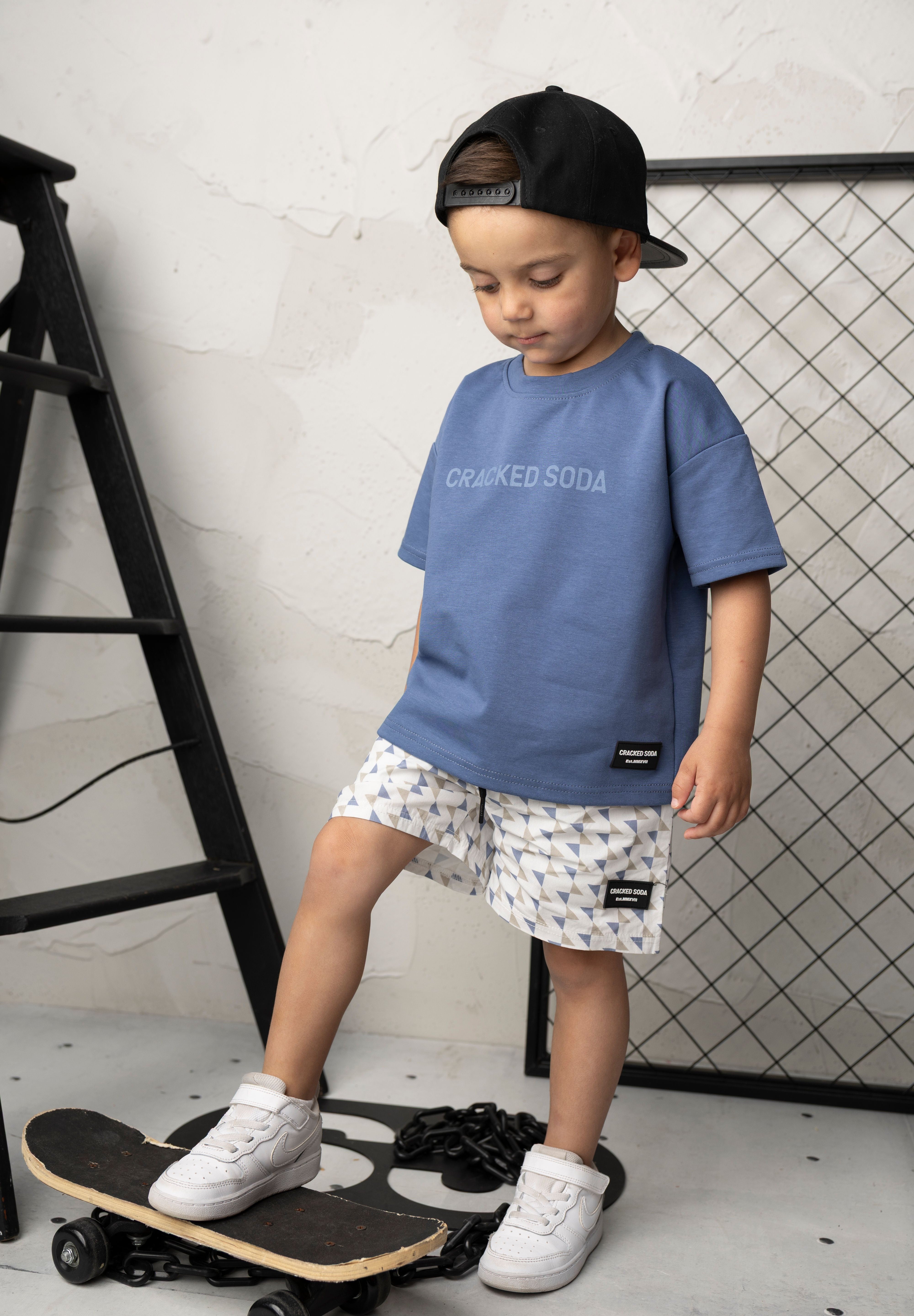 The Jameson Tee & Short Set combines comfort with eye-catching style. This two-piece set features a classic blue tee showcasing bold prints on both the front and back, paired with matching shorts that sport a striking small print detail. Perfect for active kids who want to make a statement, this set delivers versatile everyday wear that's ready for play or casual outings.