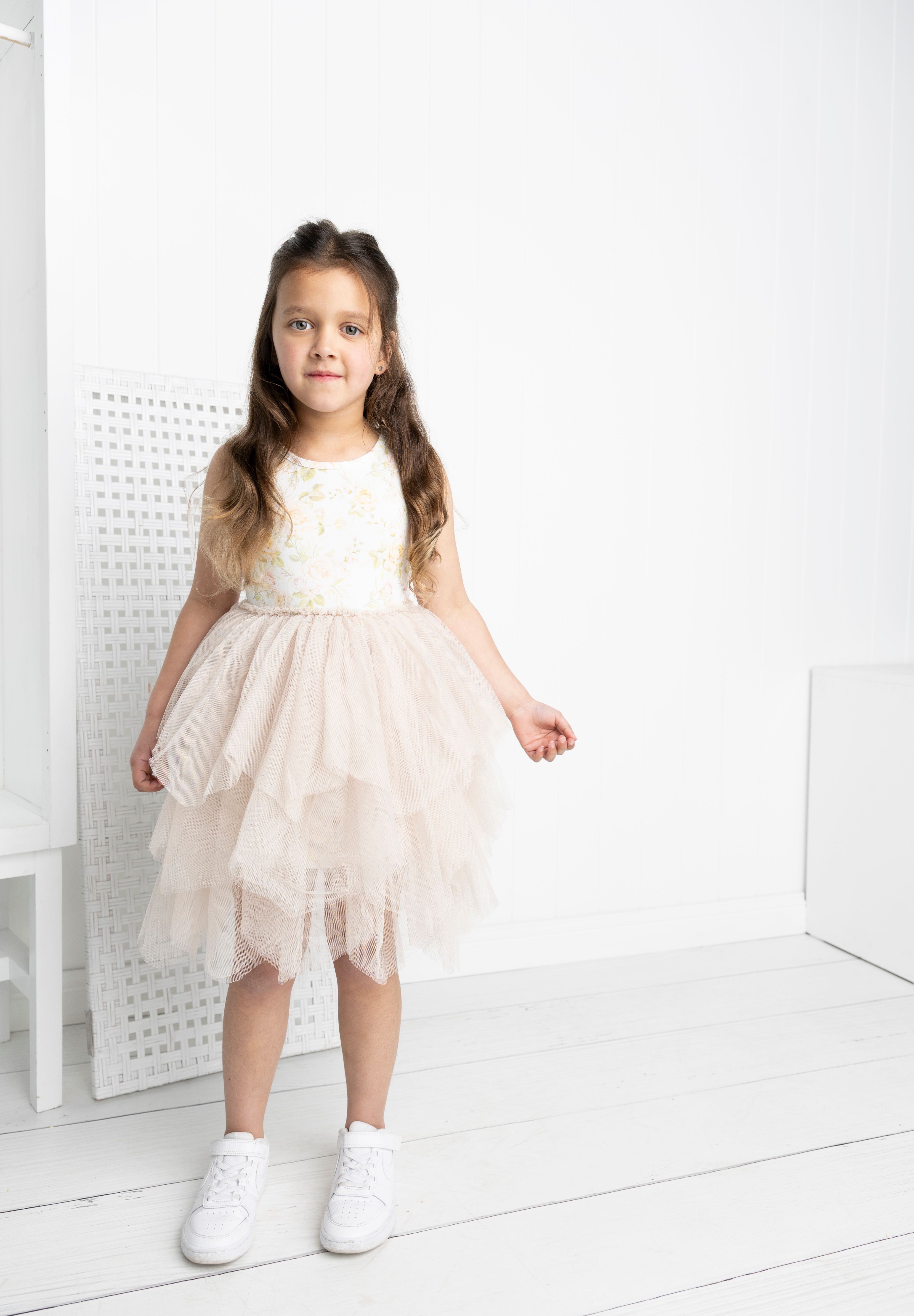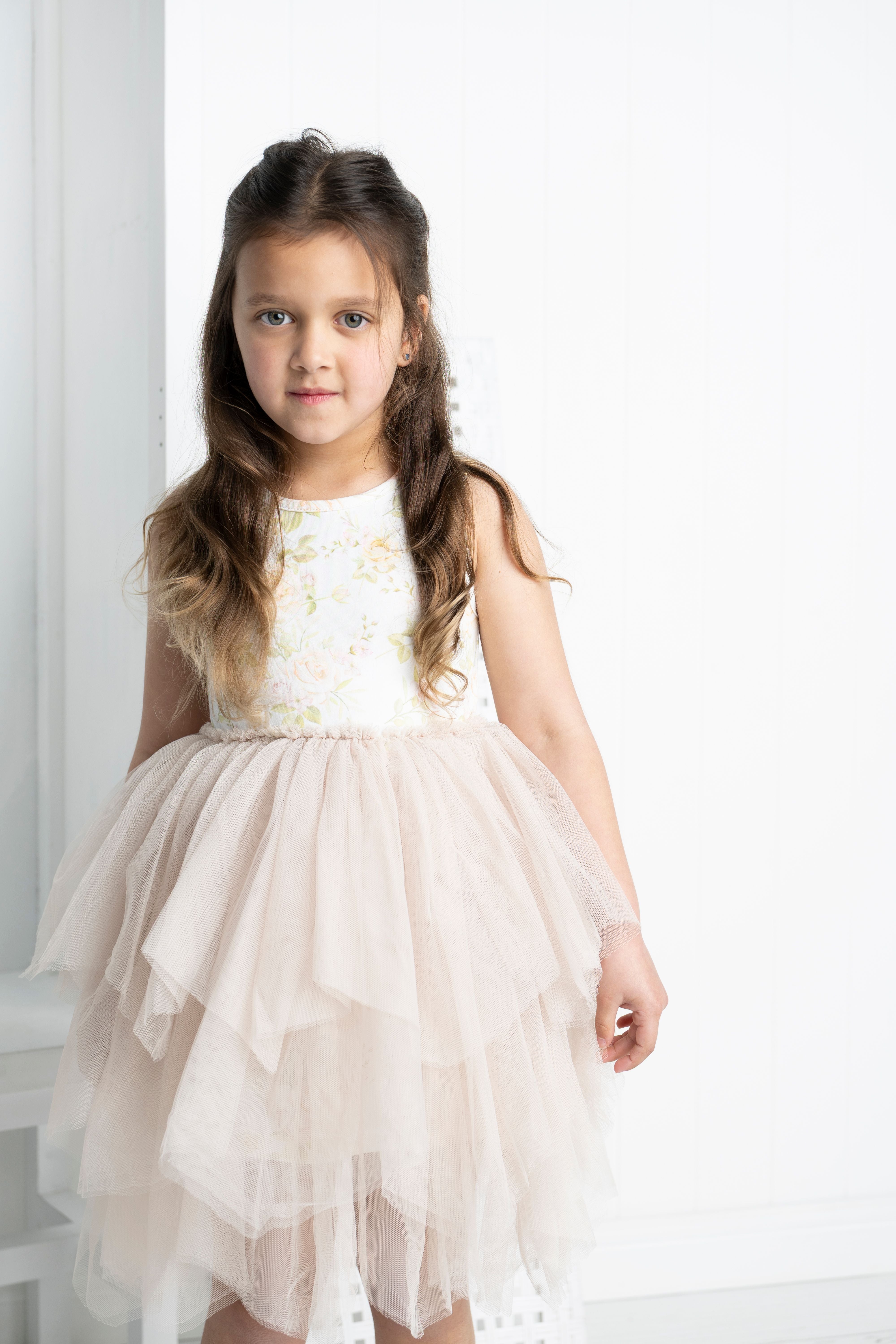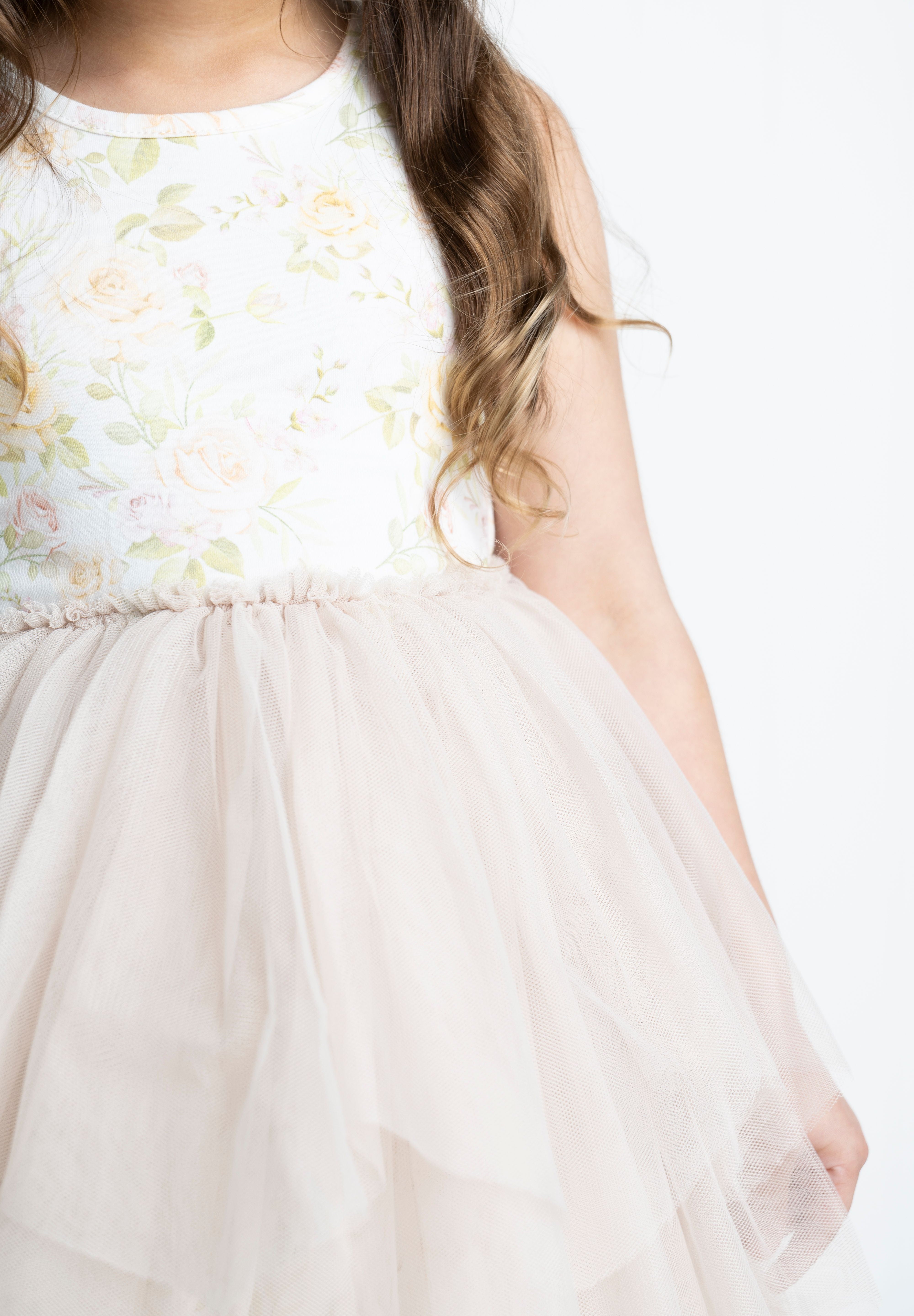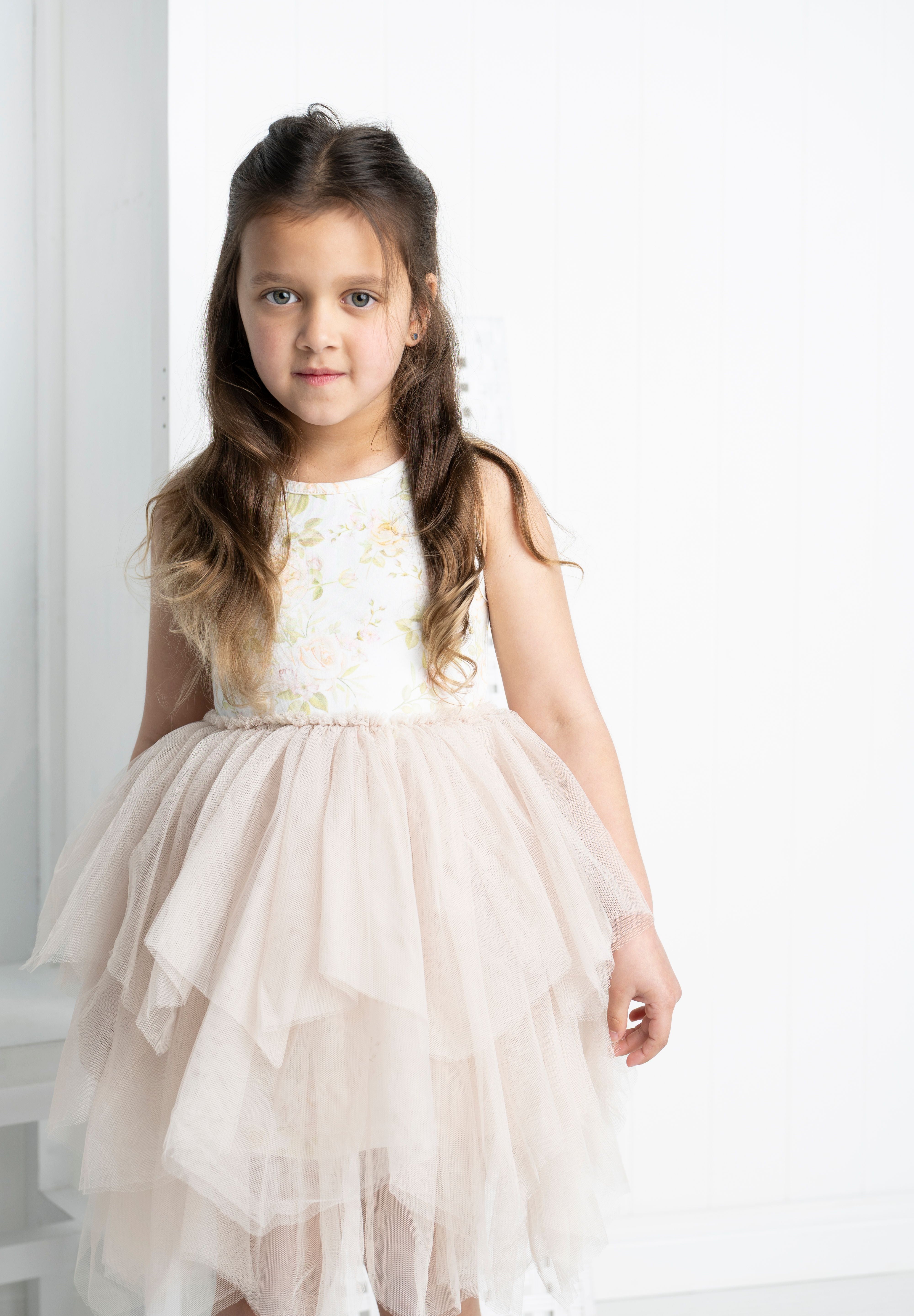 Jasmine Floral Beige Shredded Tutu-Clothing-Cracked Soda