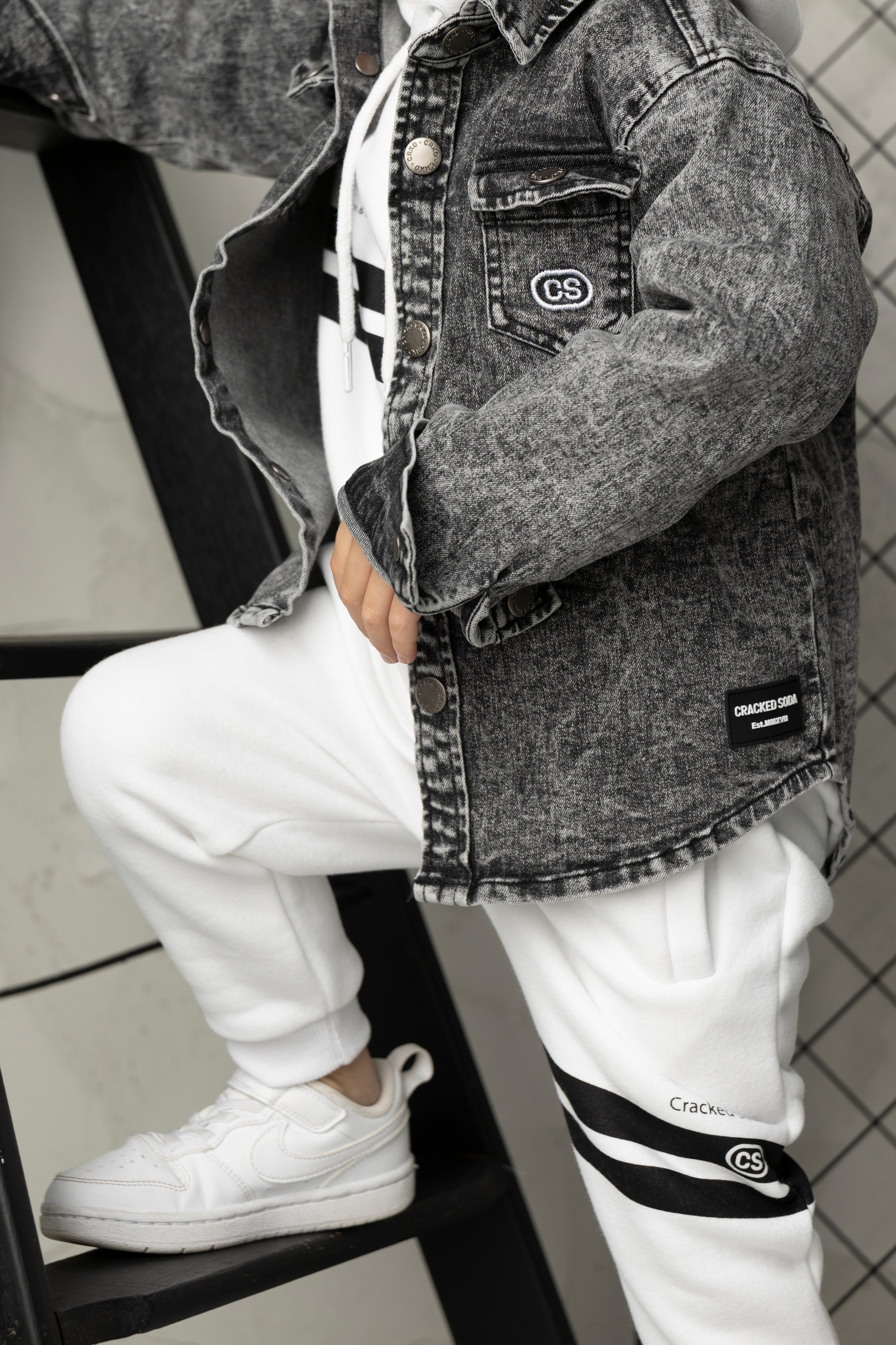 Rock the JJ Essential Denim Jacket in soft ash for a fresh take on a classic. Snap buttons keep things moving smoothly, while the CS embroidered front pocket brings that crew authenticity. Light enough to layer over anything, this jacket pairs with jeans, dresses, or trackpants for endless styling possibilities. Effortless cool in every wear.
