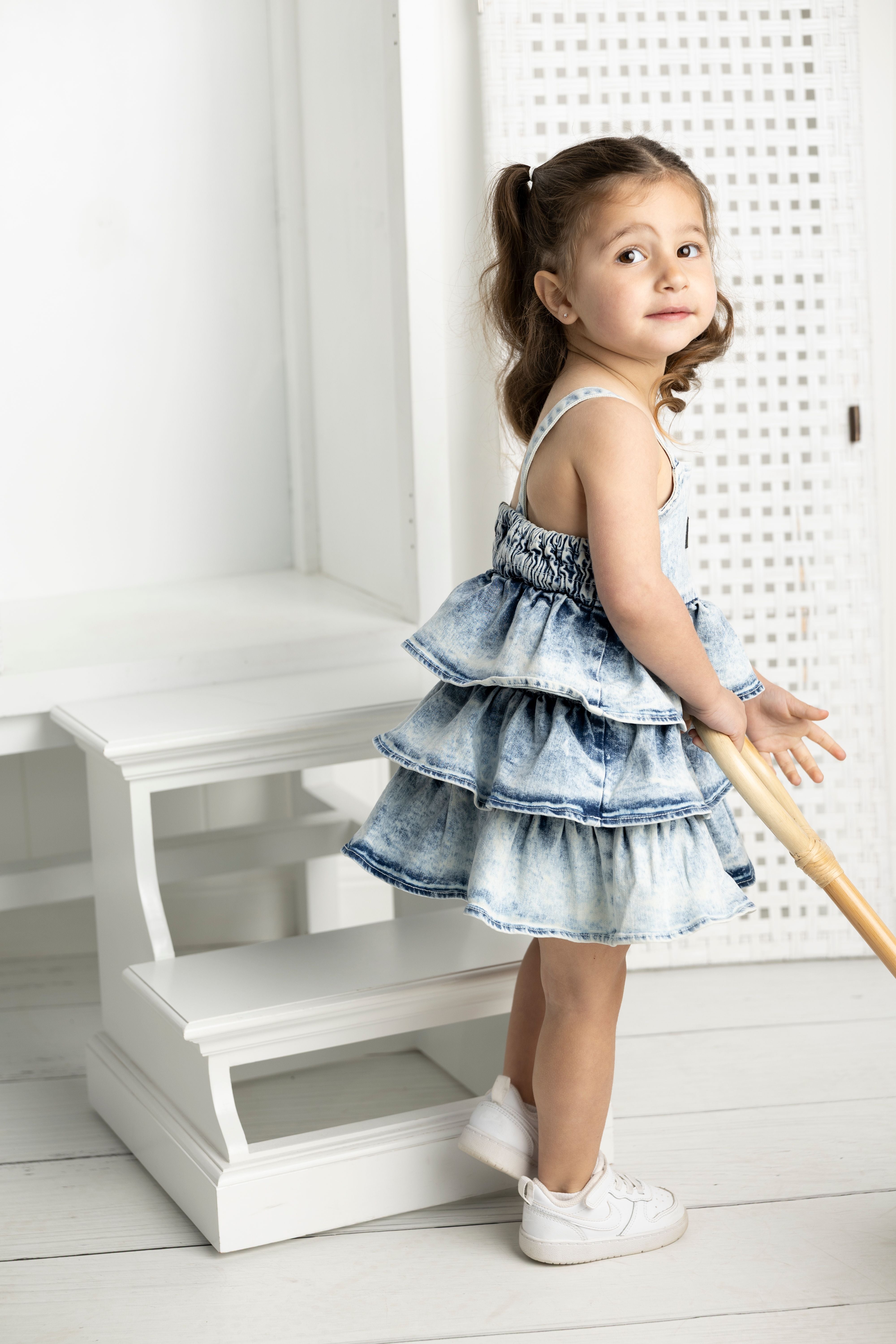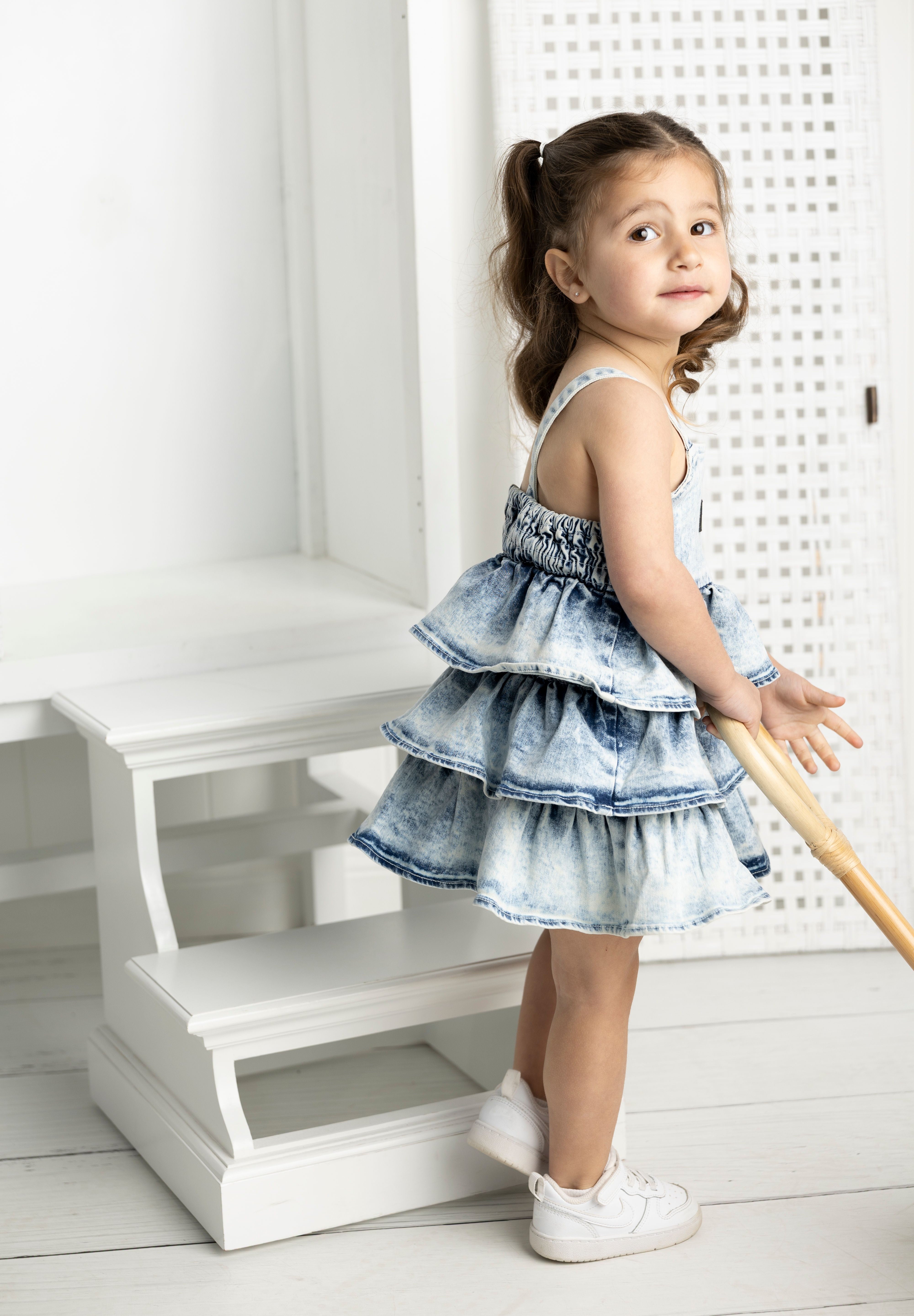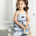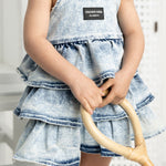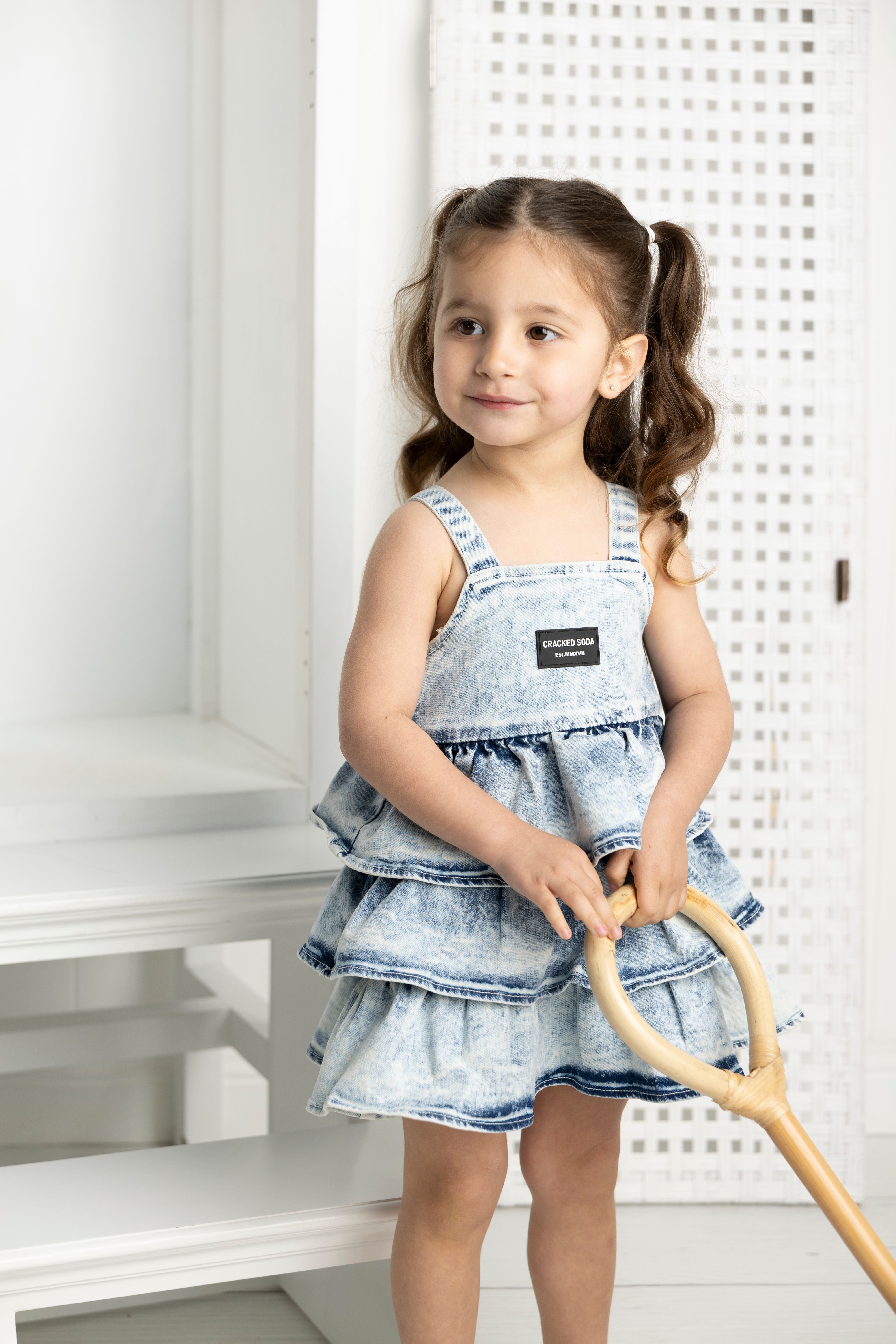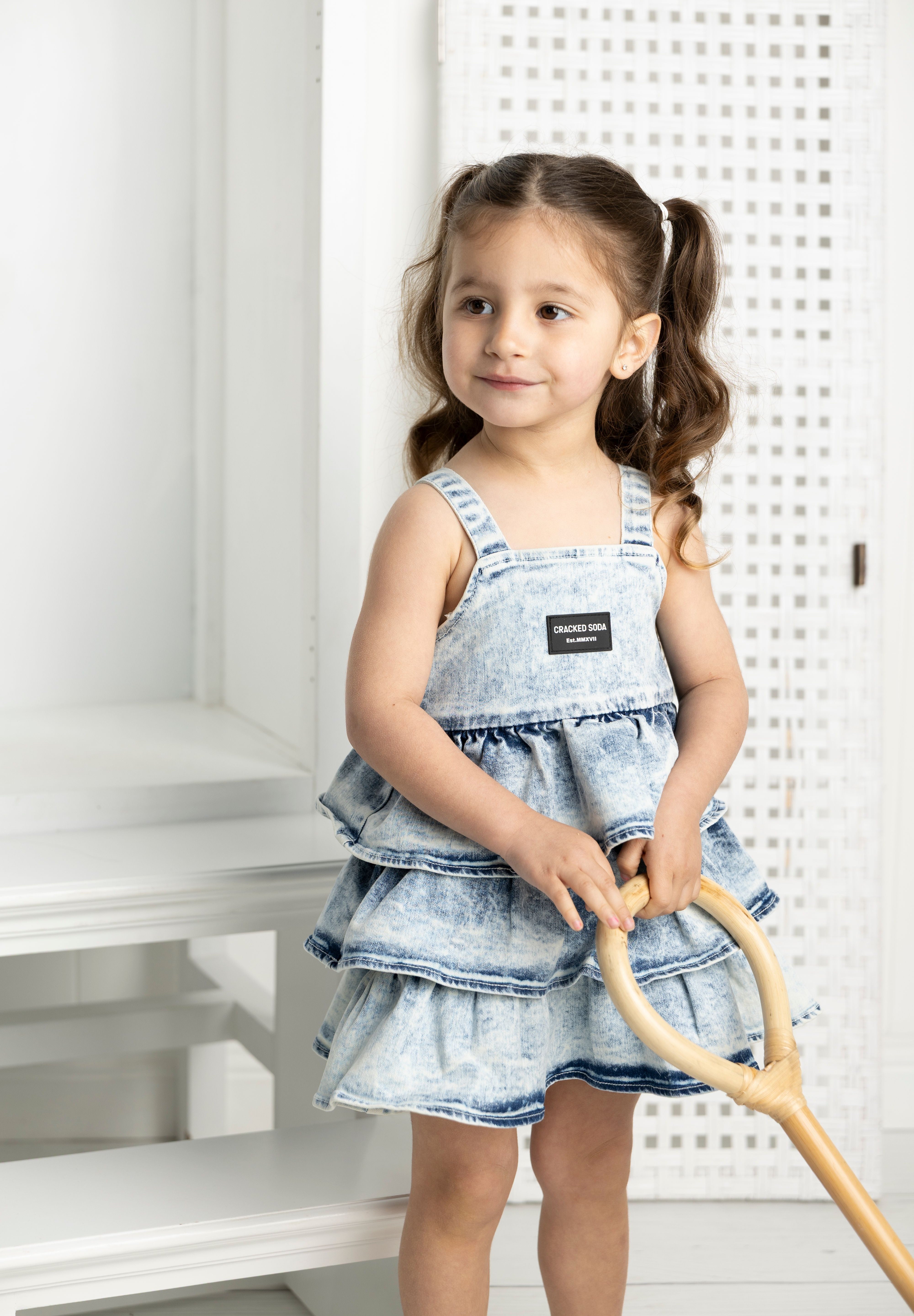 The Mia Layer Dress in Denim Blue is versatile style that grows with your little one. Adjustable button straps mean the fit evolves as she does, while the ruched back adds movement and playful dimension. The CS logo patch brings that Cracked Soda charm without stealing the show. It's the kind of dress that works for everyday adventures and special moments alike—practical, pretty, and genuinely fun to wear.
