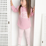 Meet the Nova Hoodie & Legging Set—your go-to combo for effortless style and comfort. The blush hoodie features eye-catching detailed design with an adjustable drawstring hood and curved hems that create a flattering, modern silhouette. Pair it with the soft pink leggings, complete with an elastic waistband and iconic CS embroidered logo for that signature Cracked Soda touch. Crafted from ribbed fleece that's gentle on skin and built to withstand daily wear, this set delivers playful personality and practical comfort in one cosy package.