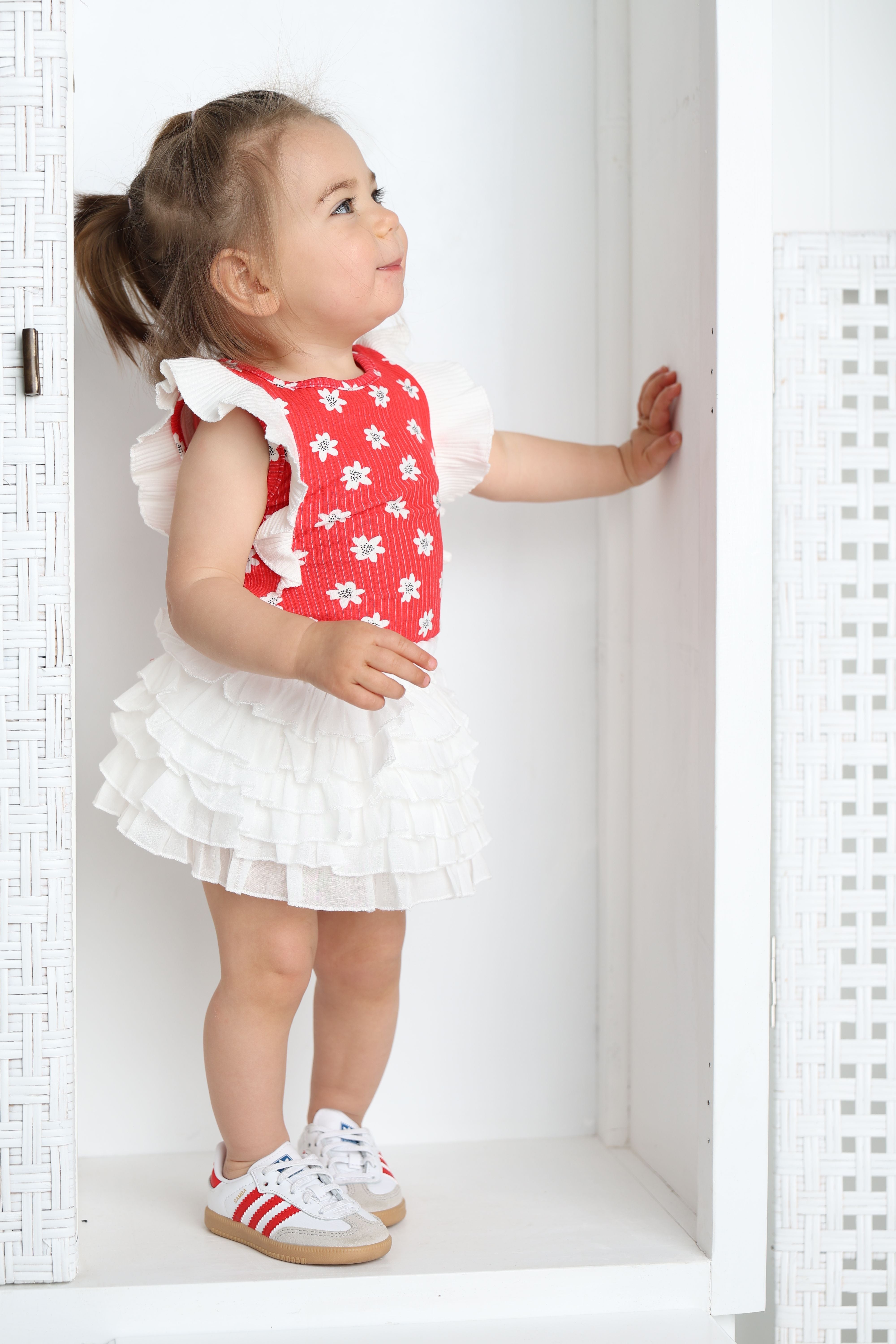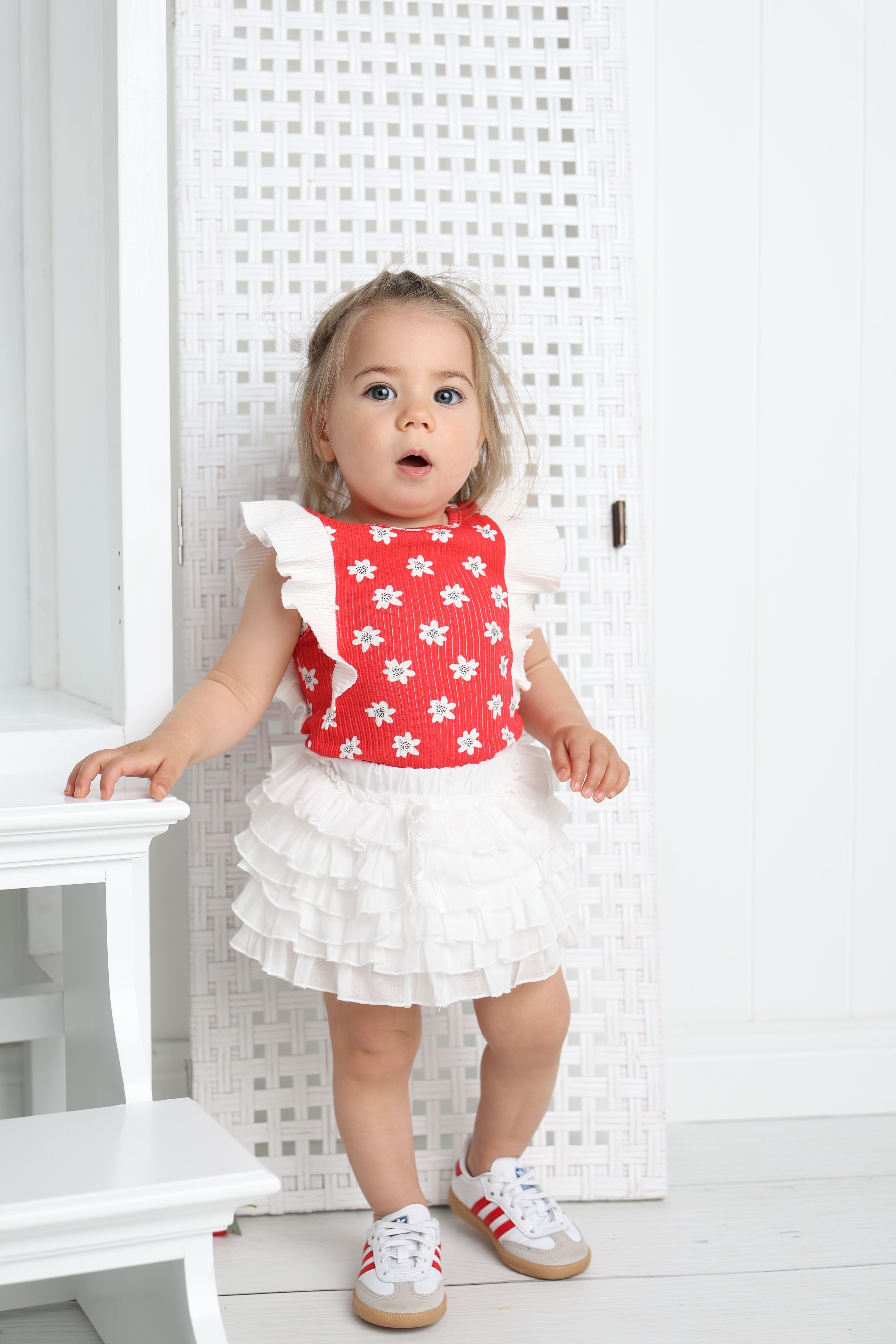 Bring a touch of fun to any occasion with the Poppy Frill Top & Skirt Set. Featuring a charming frill top paired with a layered white frill skirt, this duo adds playful movement and lightness to your look. Perfect for sunny days or festive gatherings, it combines comfort and style effortlessly.