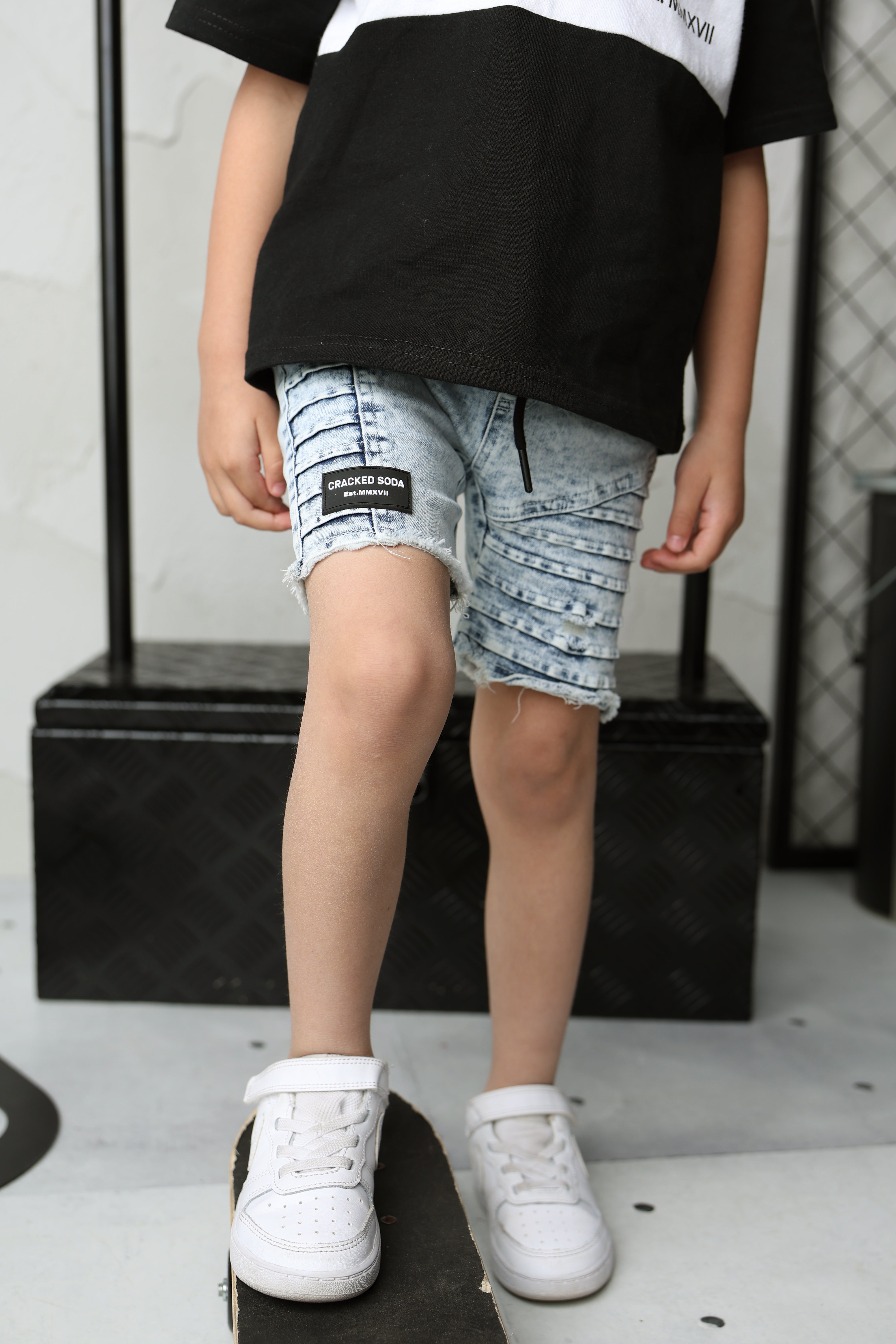 Rhodes Detailed Denim Shorts - Blue-Clothing-Cracked Soda