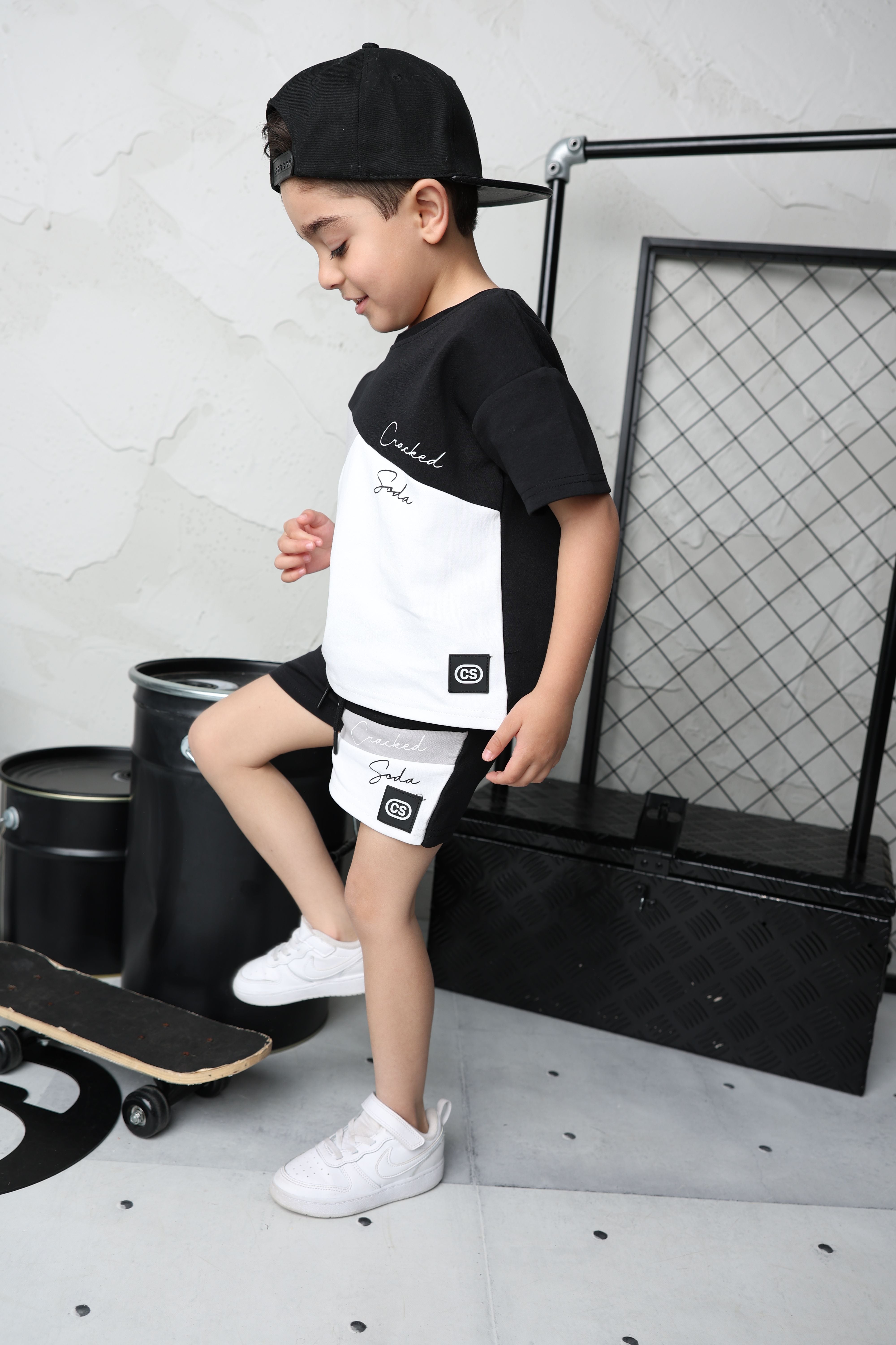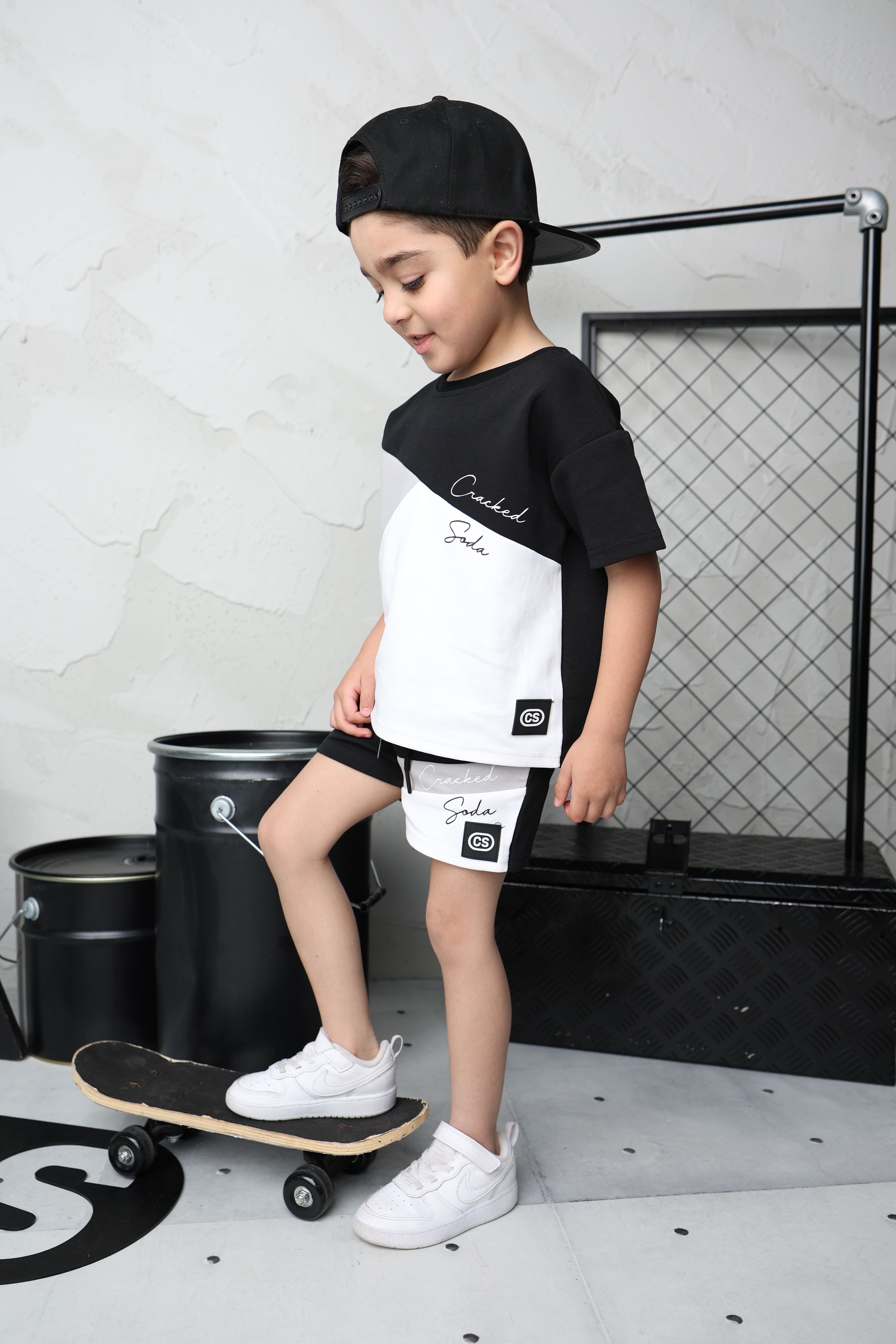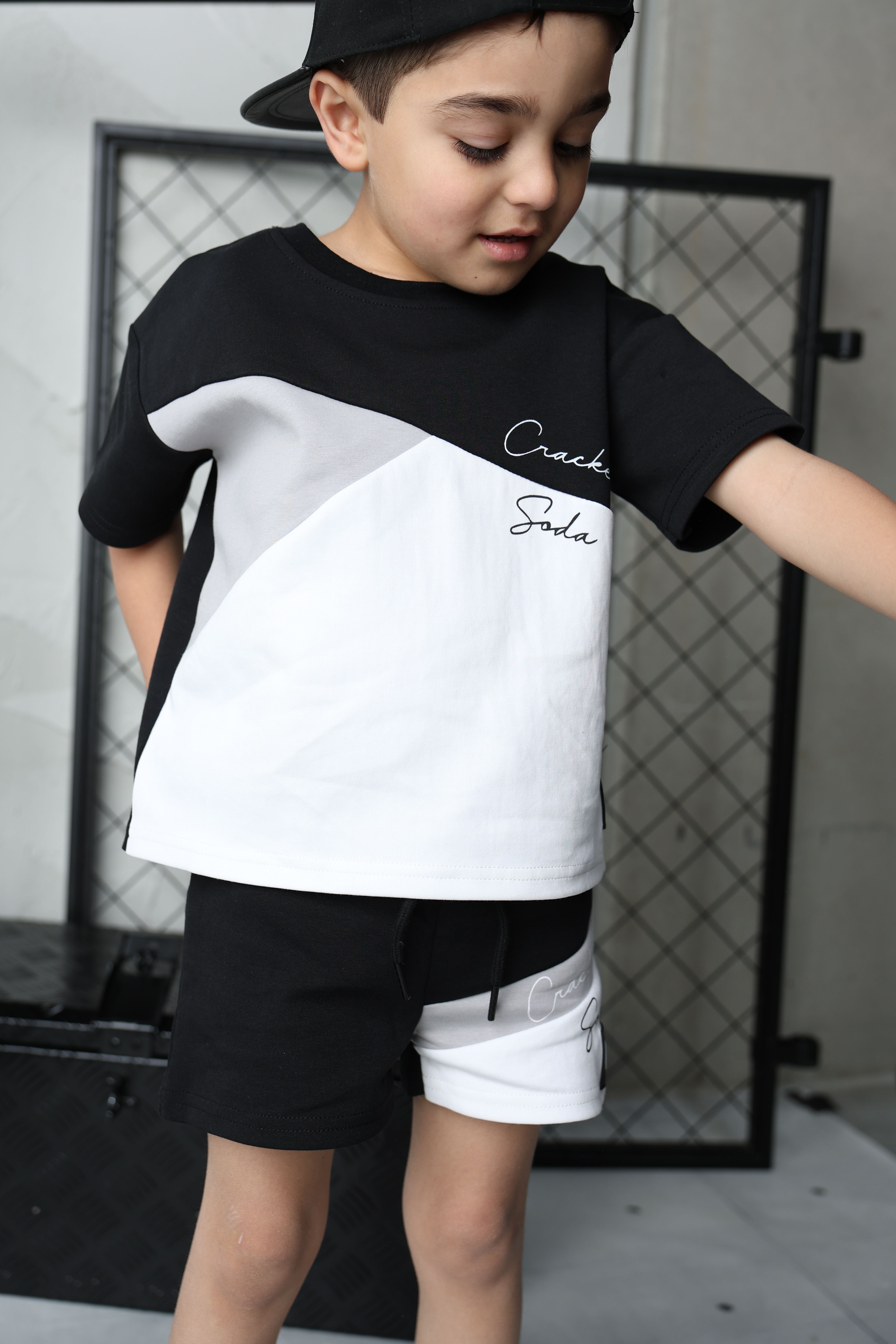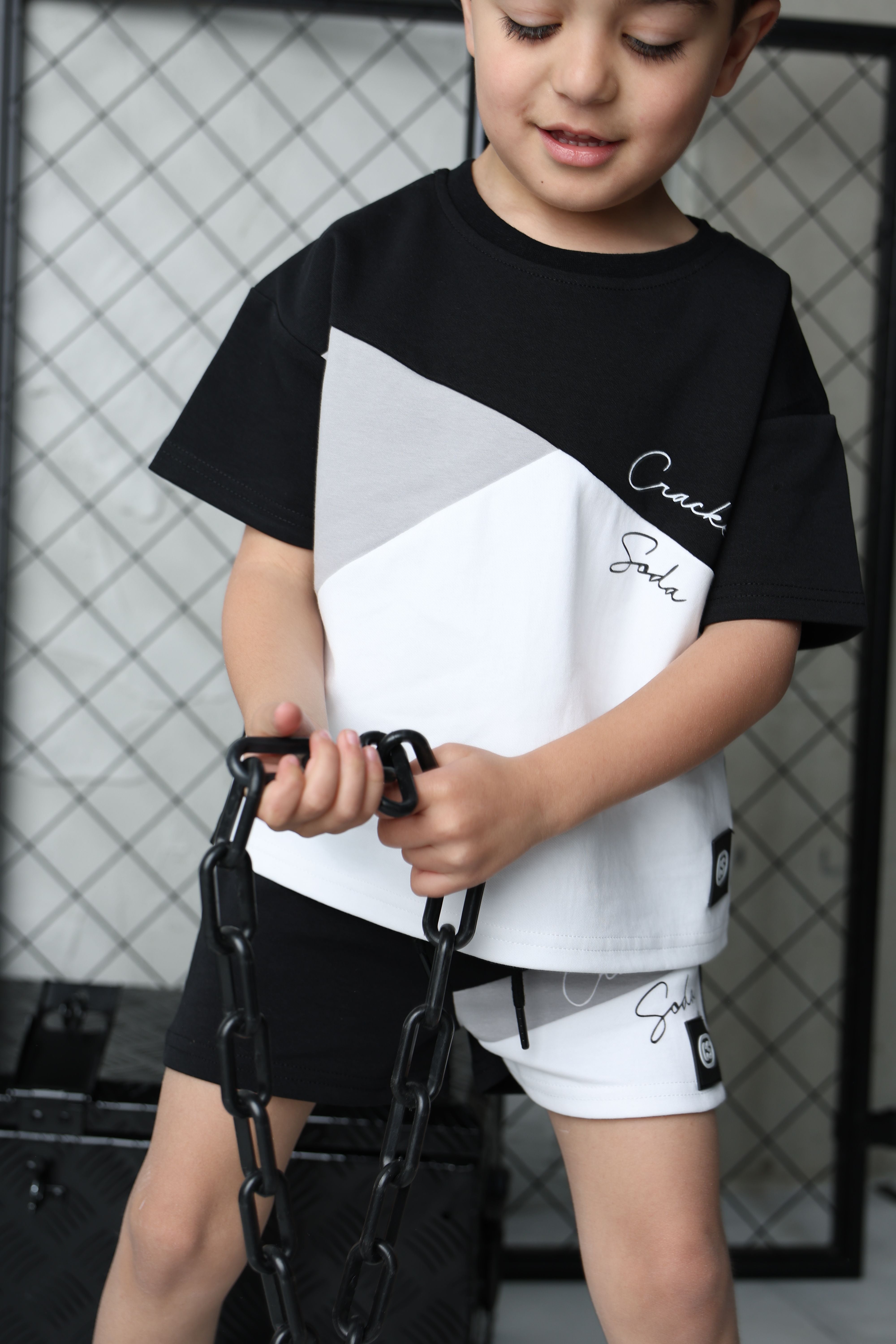 Add a playful twist to your wardrobe with the Sammy Multi Tee & Short Set. Featuring a stylish mix of grey, white, and black, this matching set combines comfort and fun for everyday adventures or chill days at home.