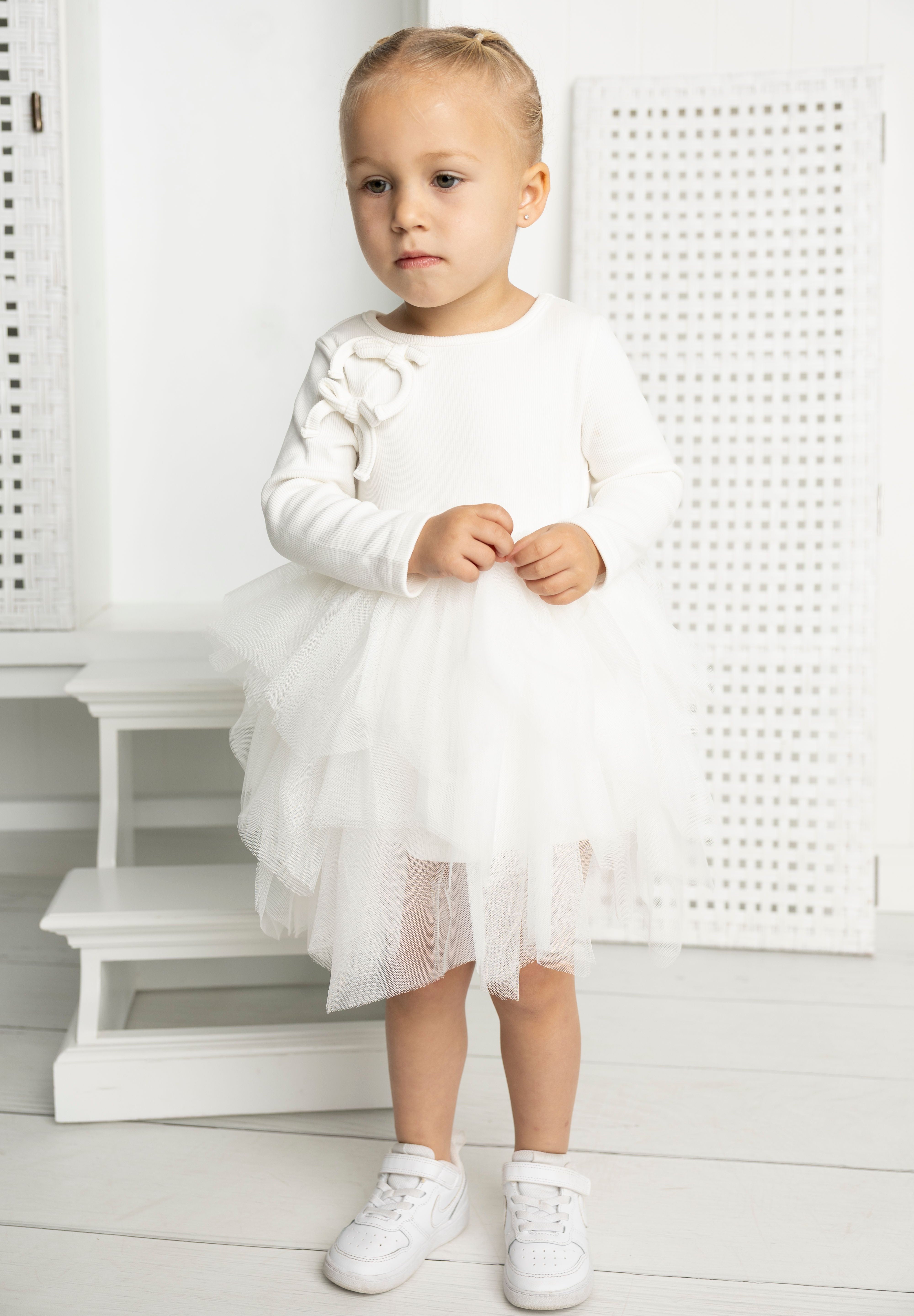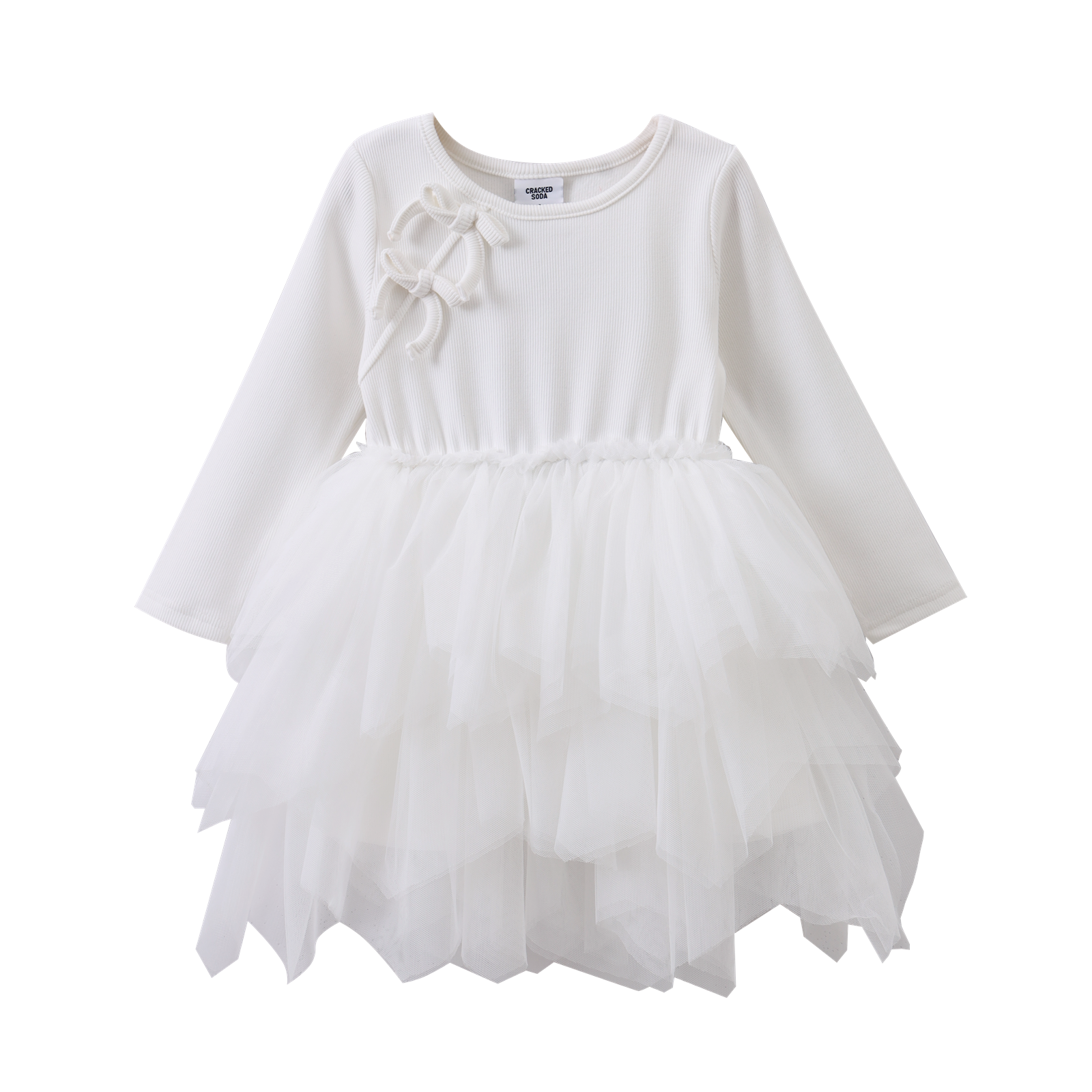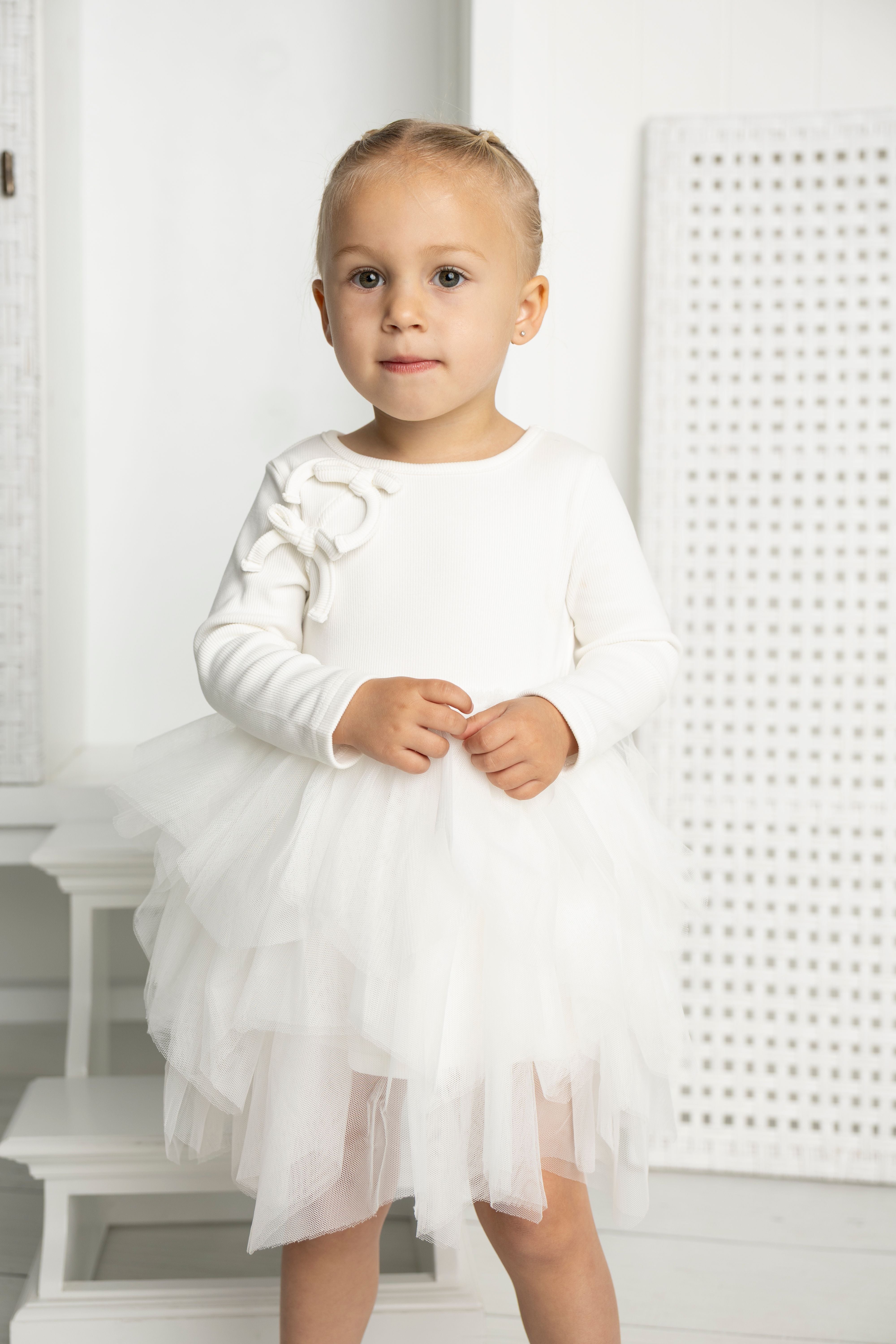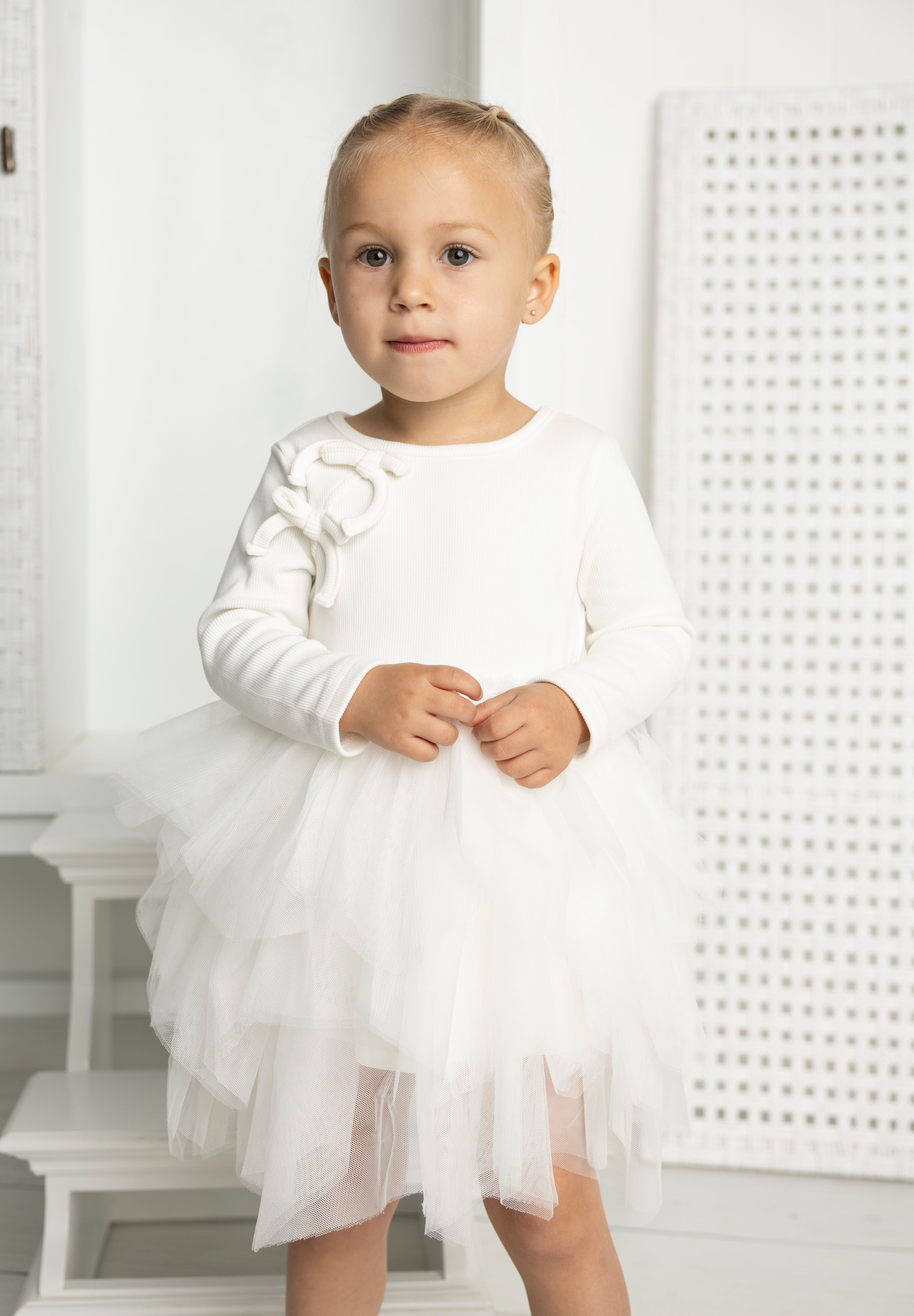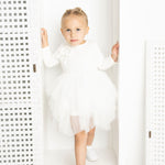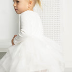 Elegant cream white tutu crafted from soft, flowing tulle! The charming bow detail brings a touch of sophistication to playtime and dress-up adventures. Lightweight and airy, it's comfortable enough for all-day wear while looking absolutely enchanting. Perfect for little ones who dream of dancing, twirling, and making magical memories.