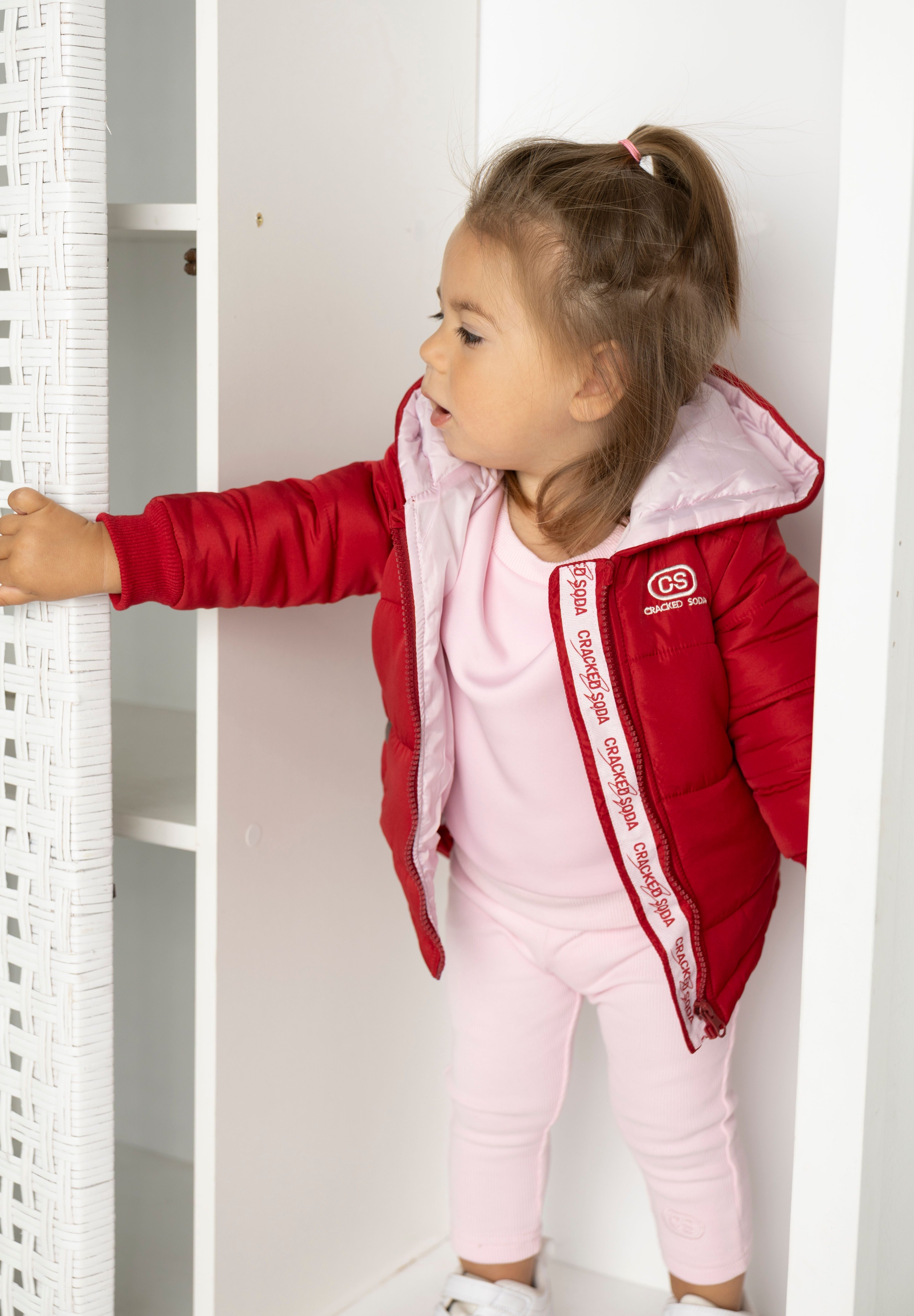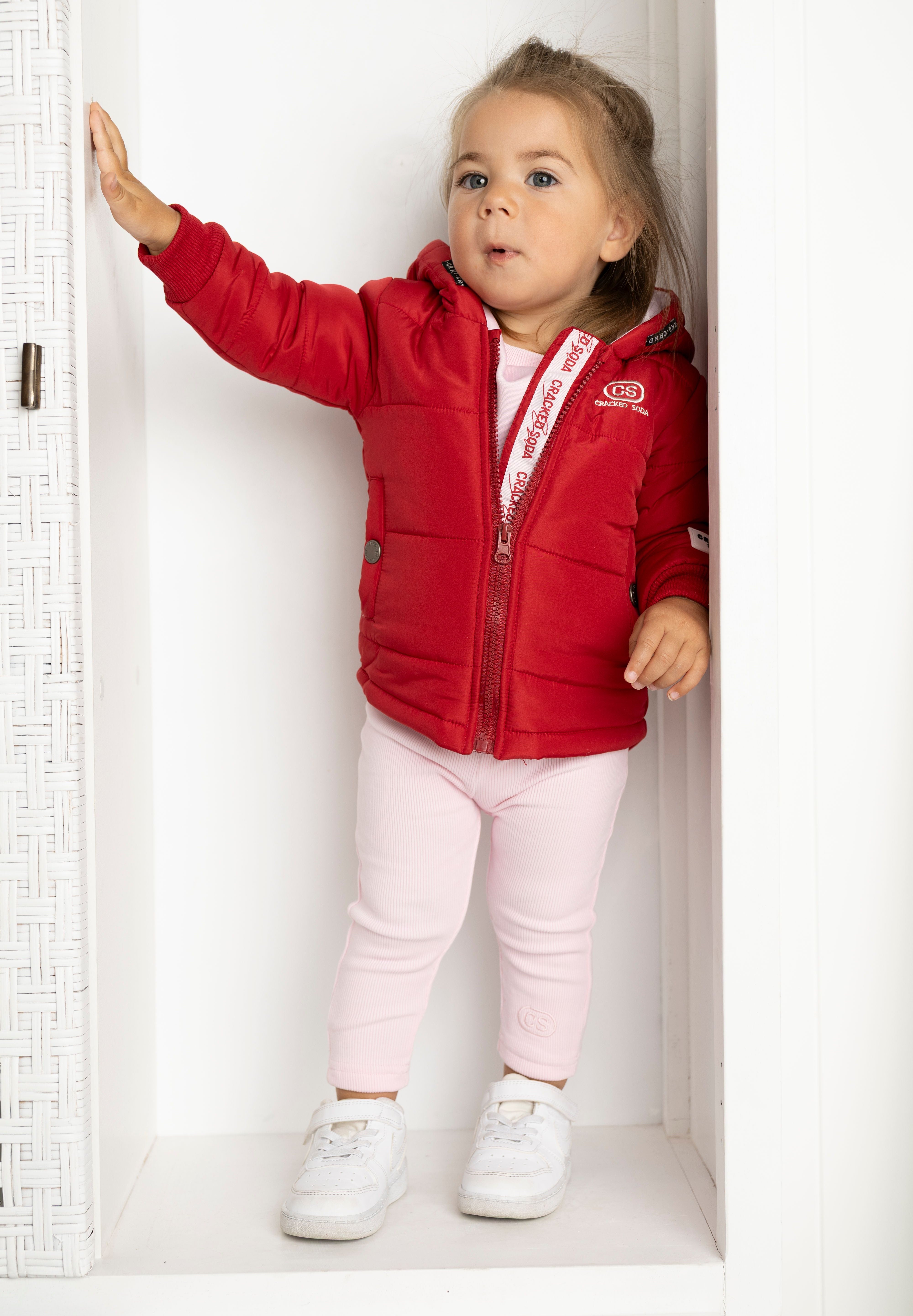 This puffed-up jacket is packed with personality! A drawstring hood keeps heads cosy, while the gorgeous CS logo ribbon insert adds that signature flair. Snap button pockets are perfect for stashing treasures and keeping hands warm. Lightweight yet toasty, it's the ideal layer for adventures big and small.