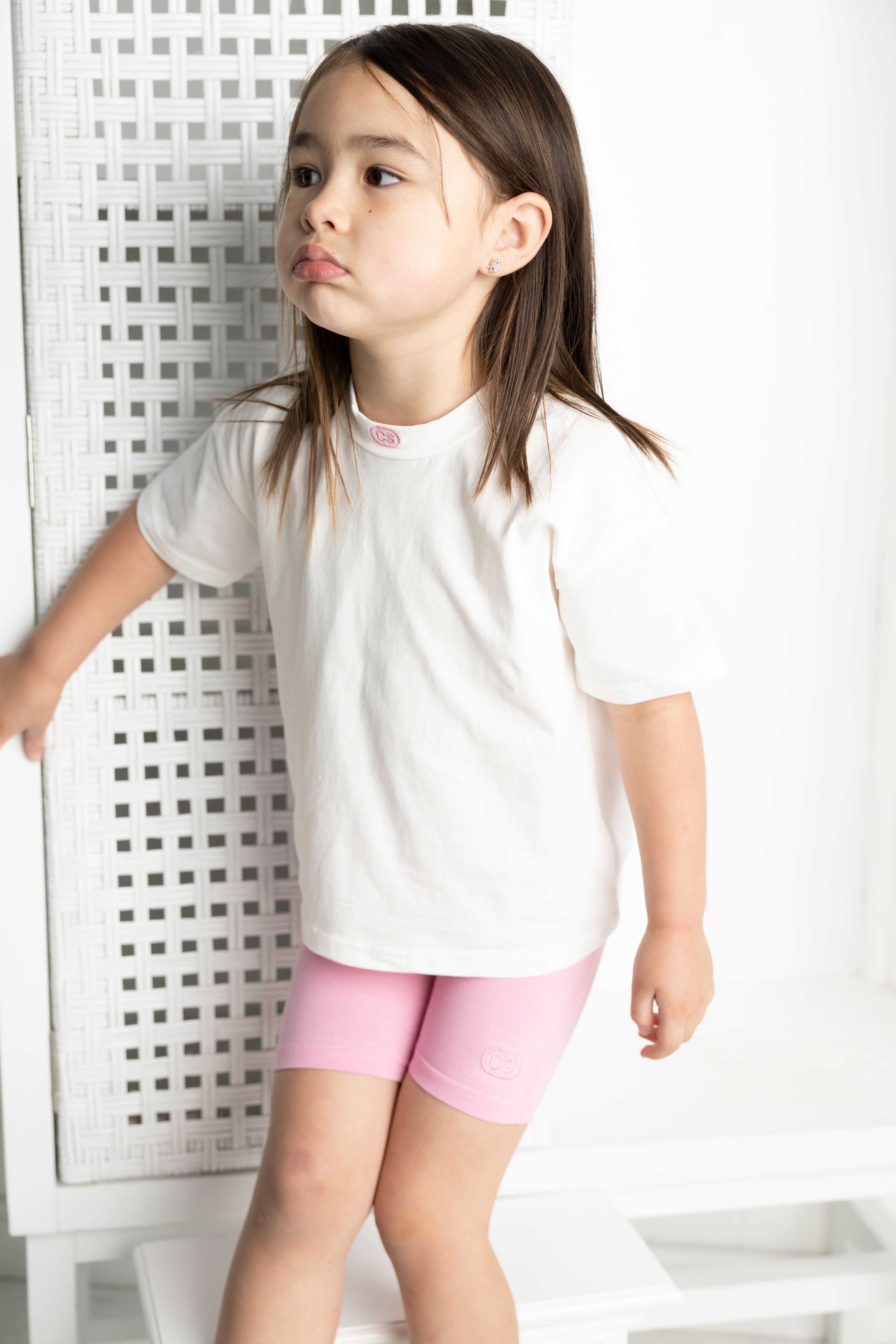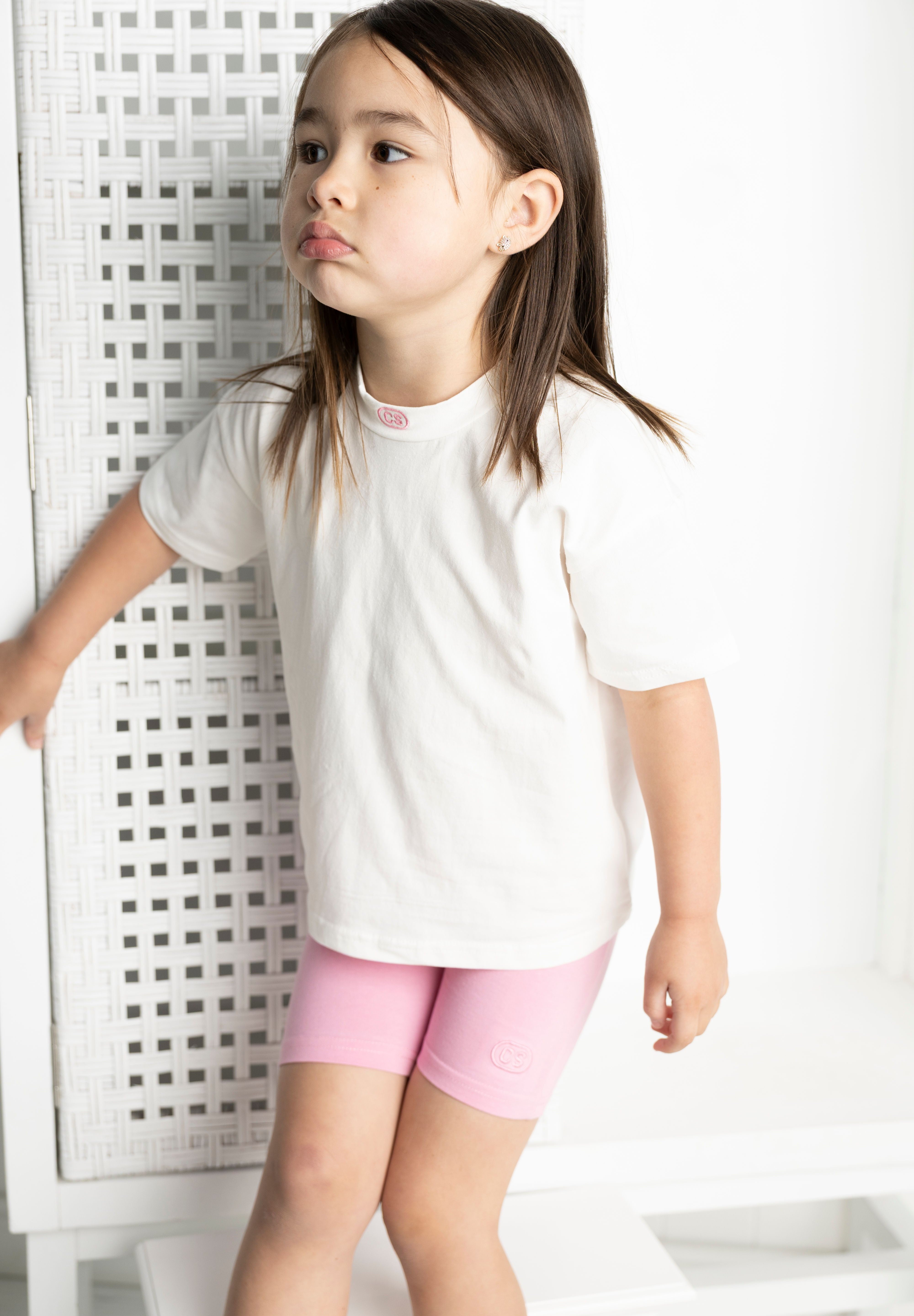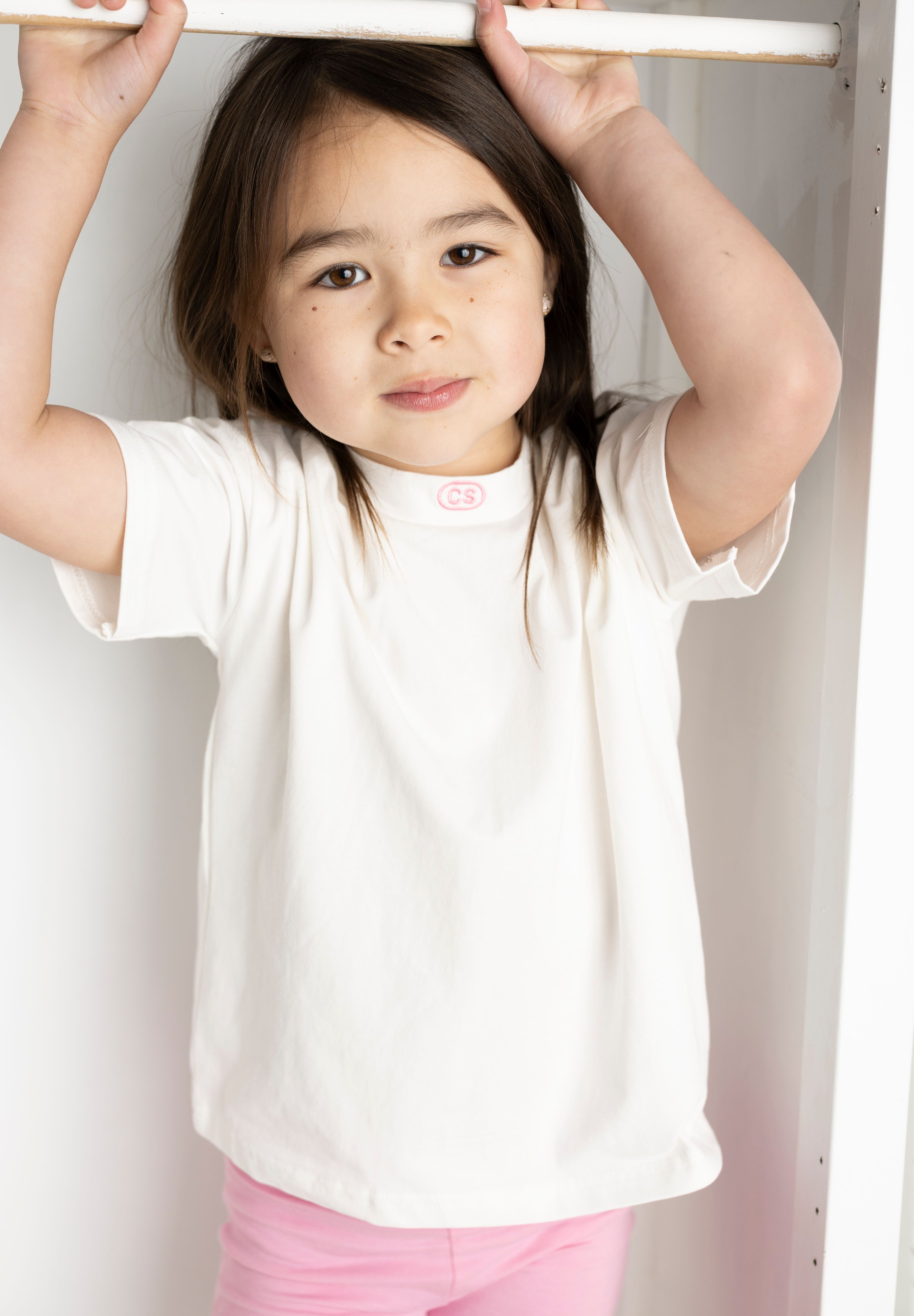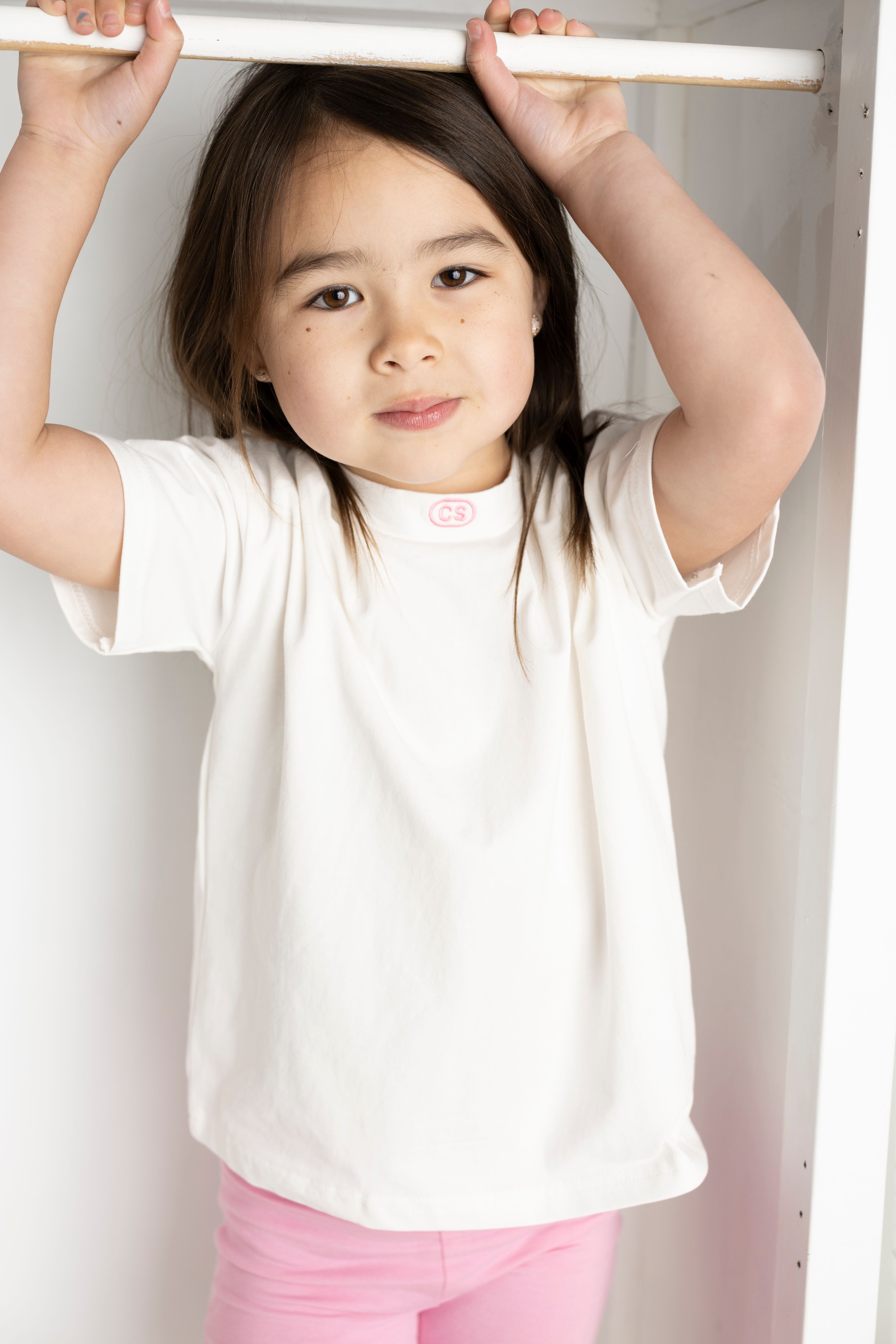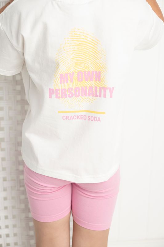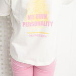 Classic white tee featuring the iconic Cracked Soda logo in soft pink at the neckline, with a bold yellow and pink graphic print across the back. Perfect for everyday wear with standout style that kids love.
