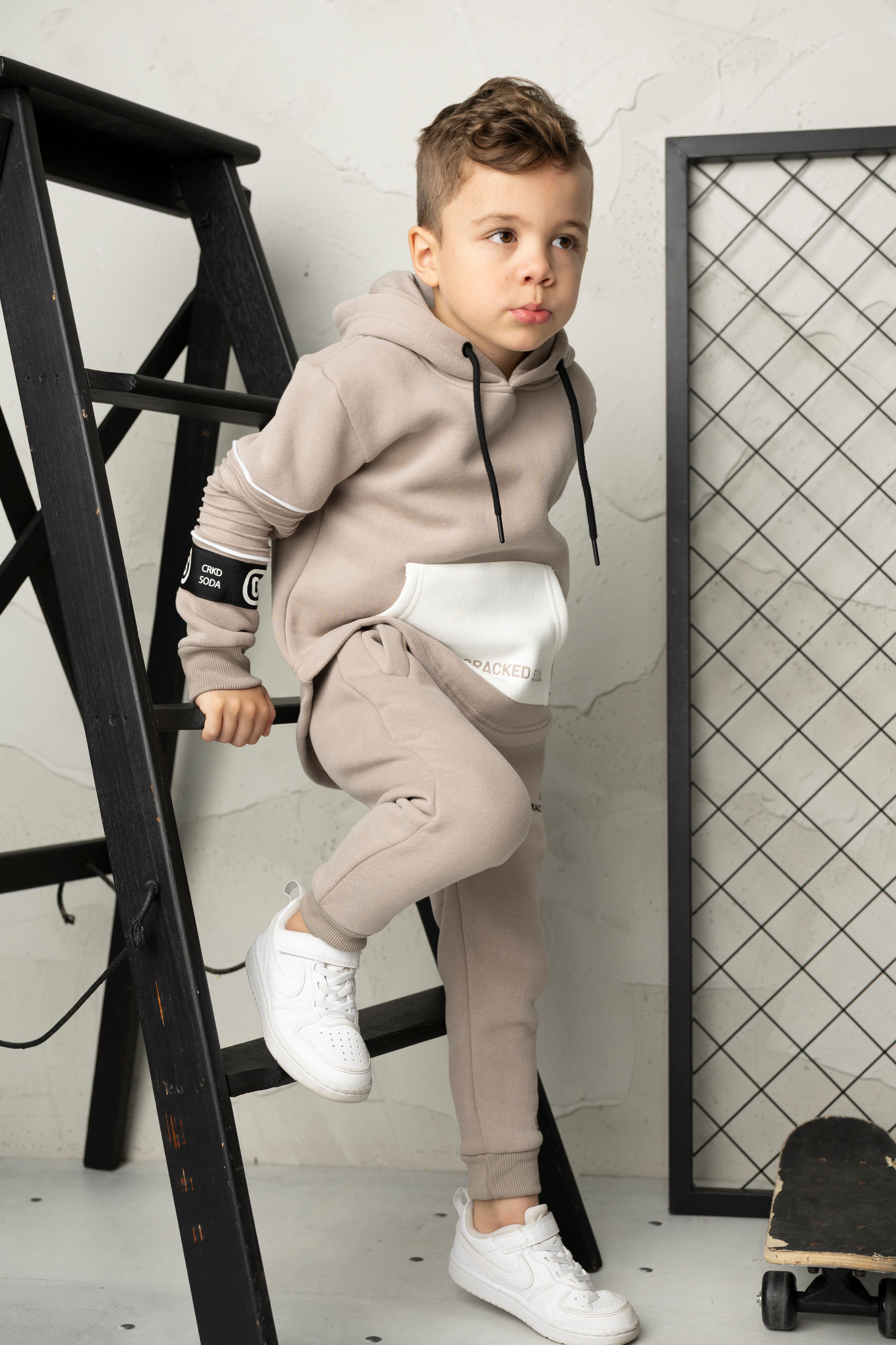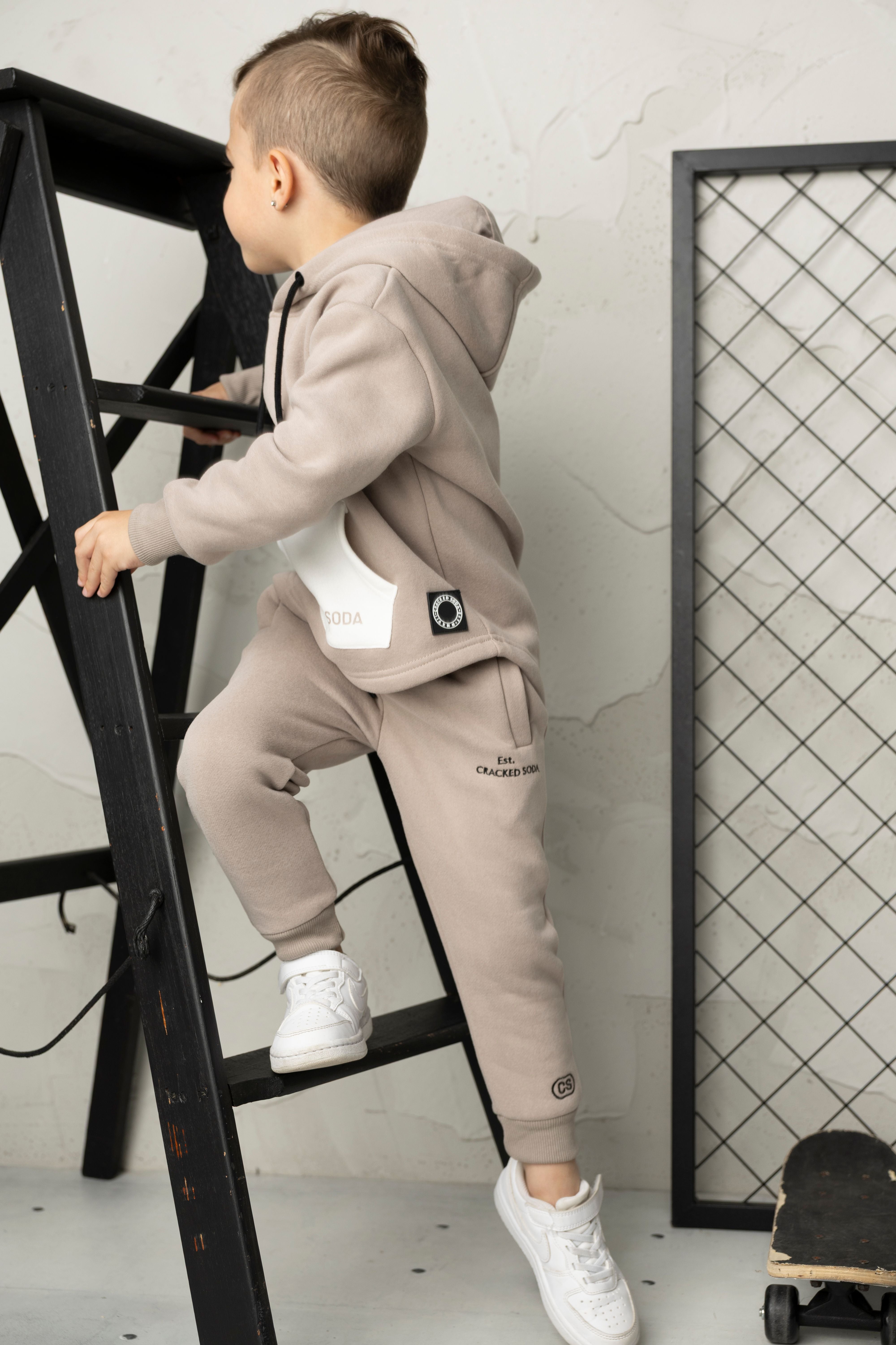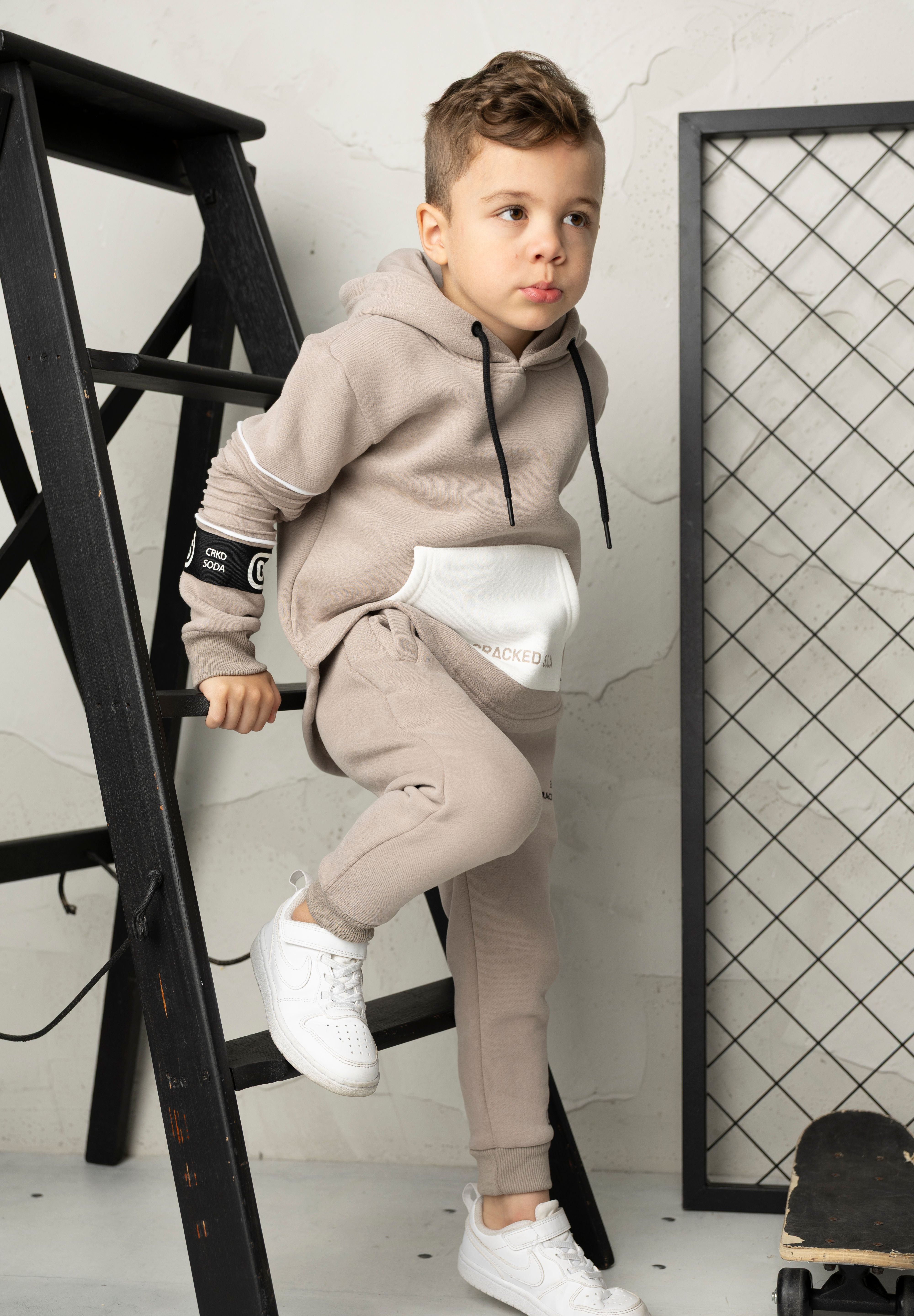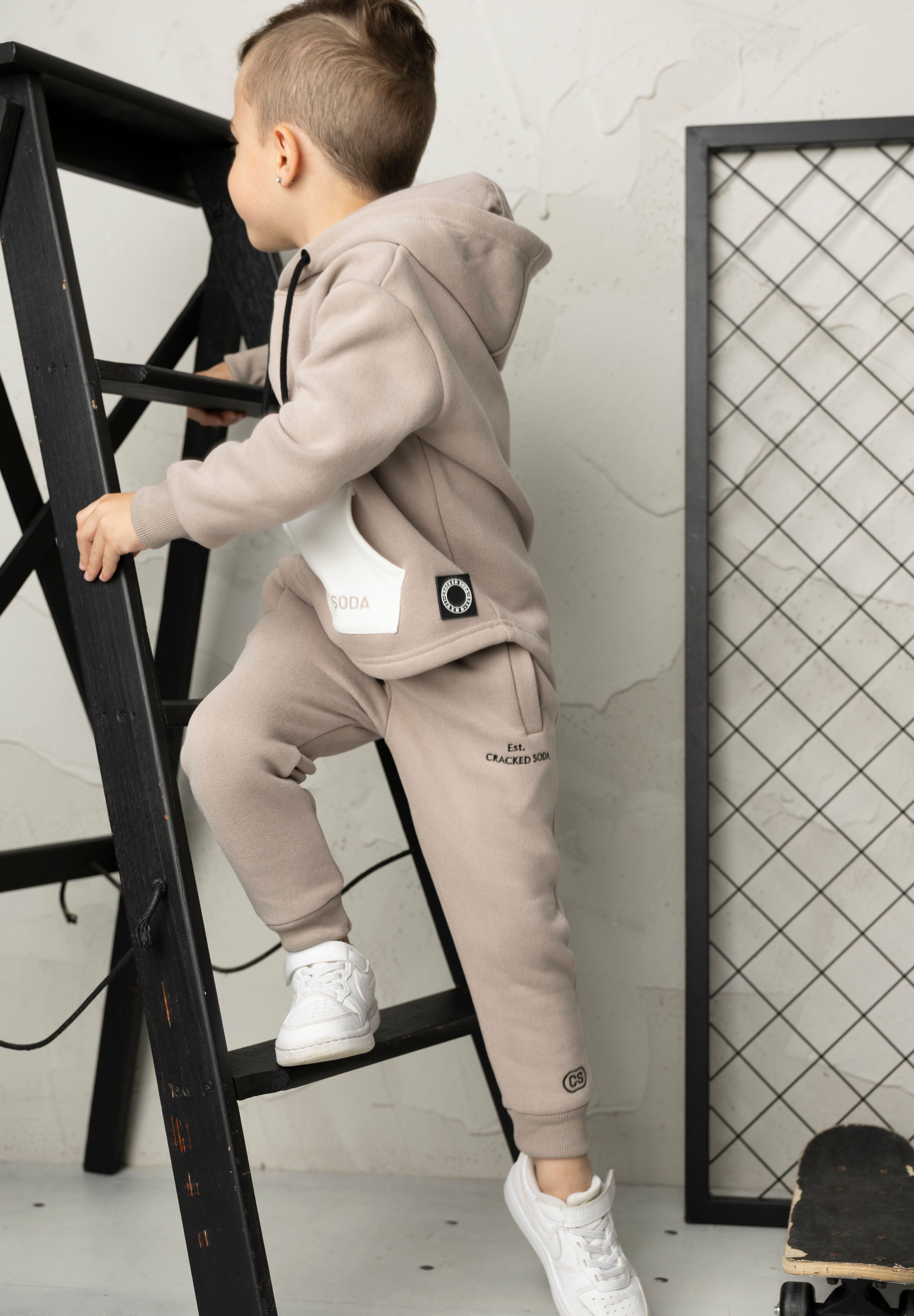 Meet your new go-to combo: the Theodore Hoodie & Trackpant Set in truffle. The hoodie features an adjustable drawstring hood, crisp white-piped ribbed armbands, and a subtle CS black logo band for understated crew vibes. Pair it with the matching trackpants—complete with an elastic waistband, drawstring adjustment, embroidered logos, and practical pockets that actually fit your stuff. Built for people who care about the details, this set works whether you're working from home or stepping out. Comfort that looks intentional, every single time.